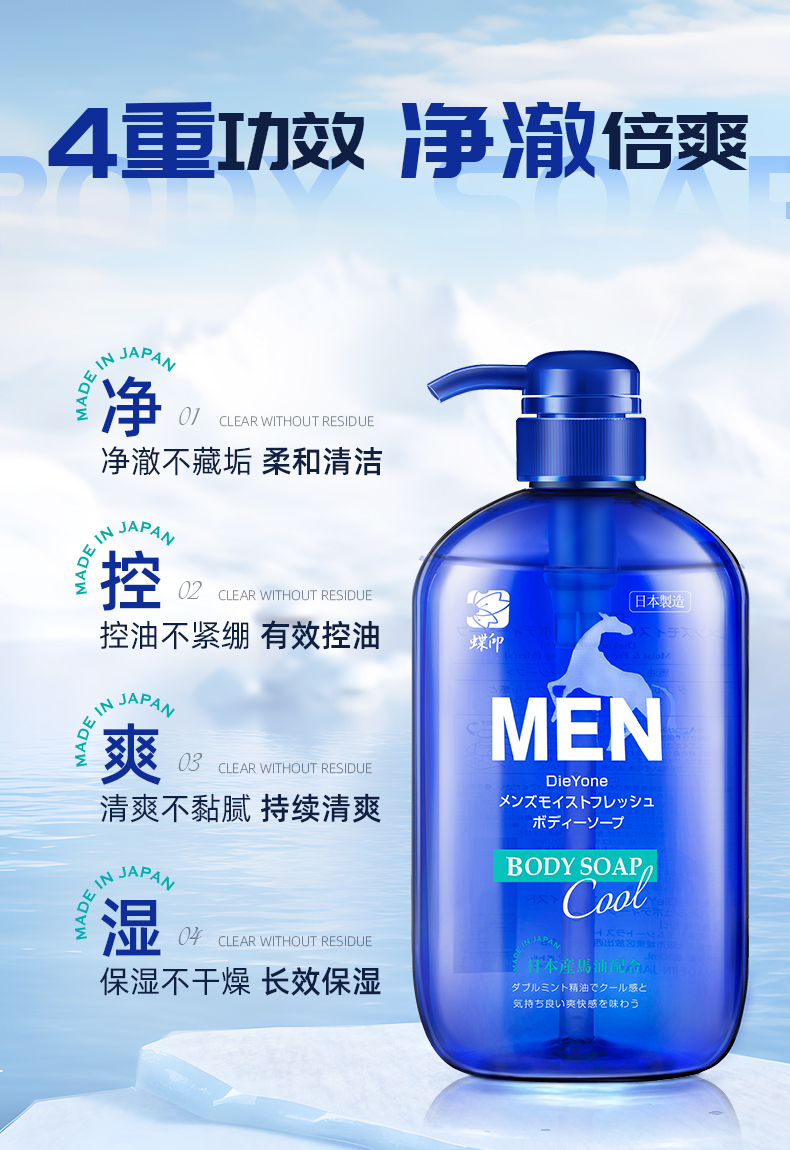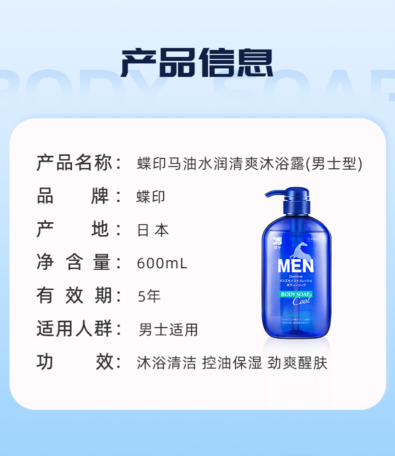 蝶印 马油水润清爽沐浴露(男士型)600mL(计价单位:瓶) 幻影蓝