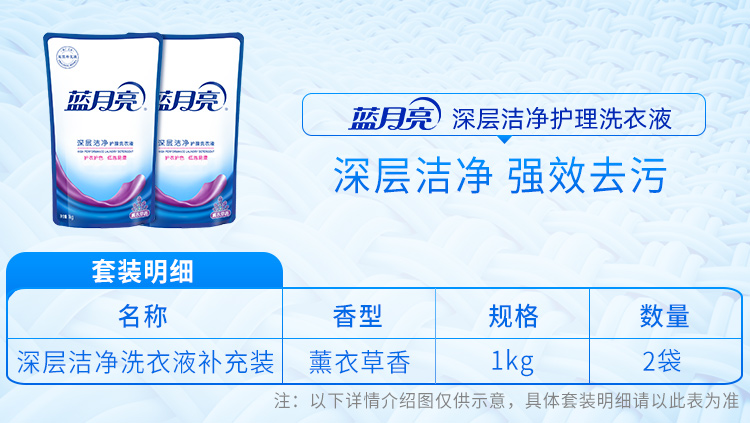 蓝月亮薰衣草洁净洗衣液袋装1kg*2,10001551(单位:套) 蓝色