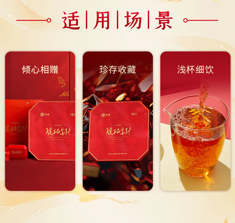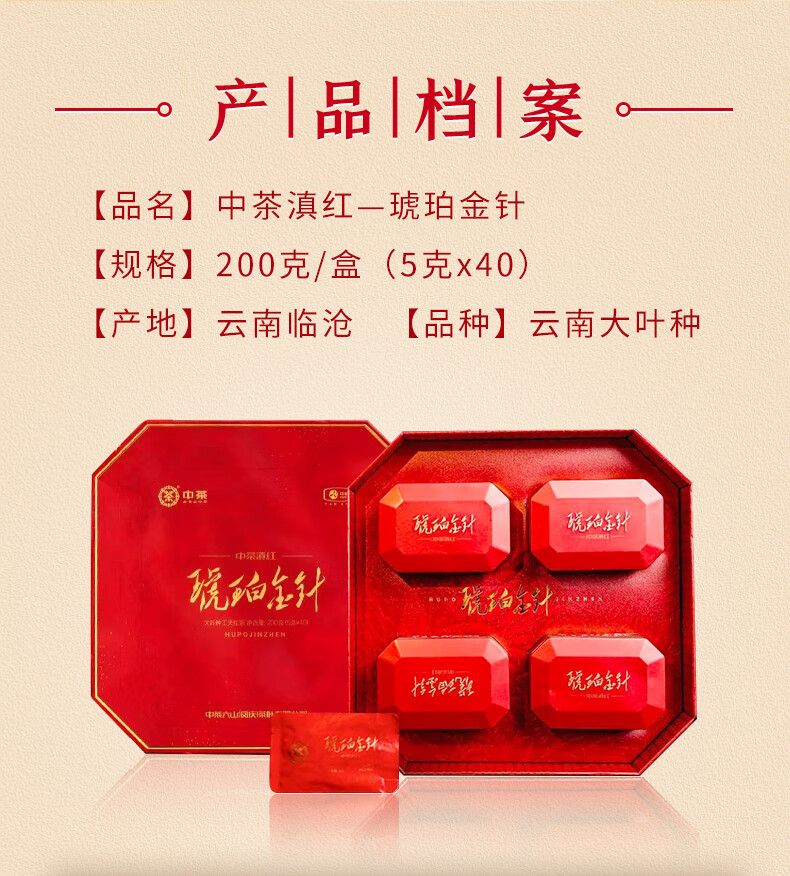 中茶 大叶种工夫红茶 200g 云南滇红琥珀金针 红色(单位:盒)