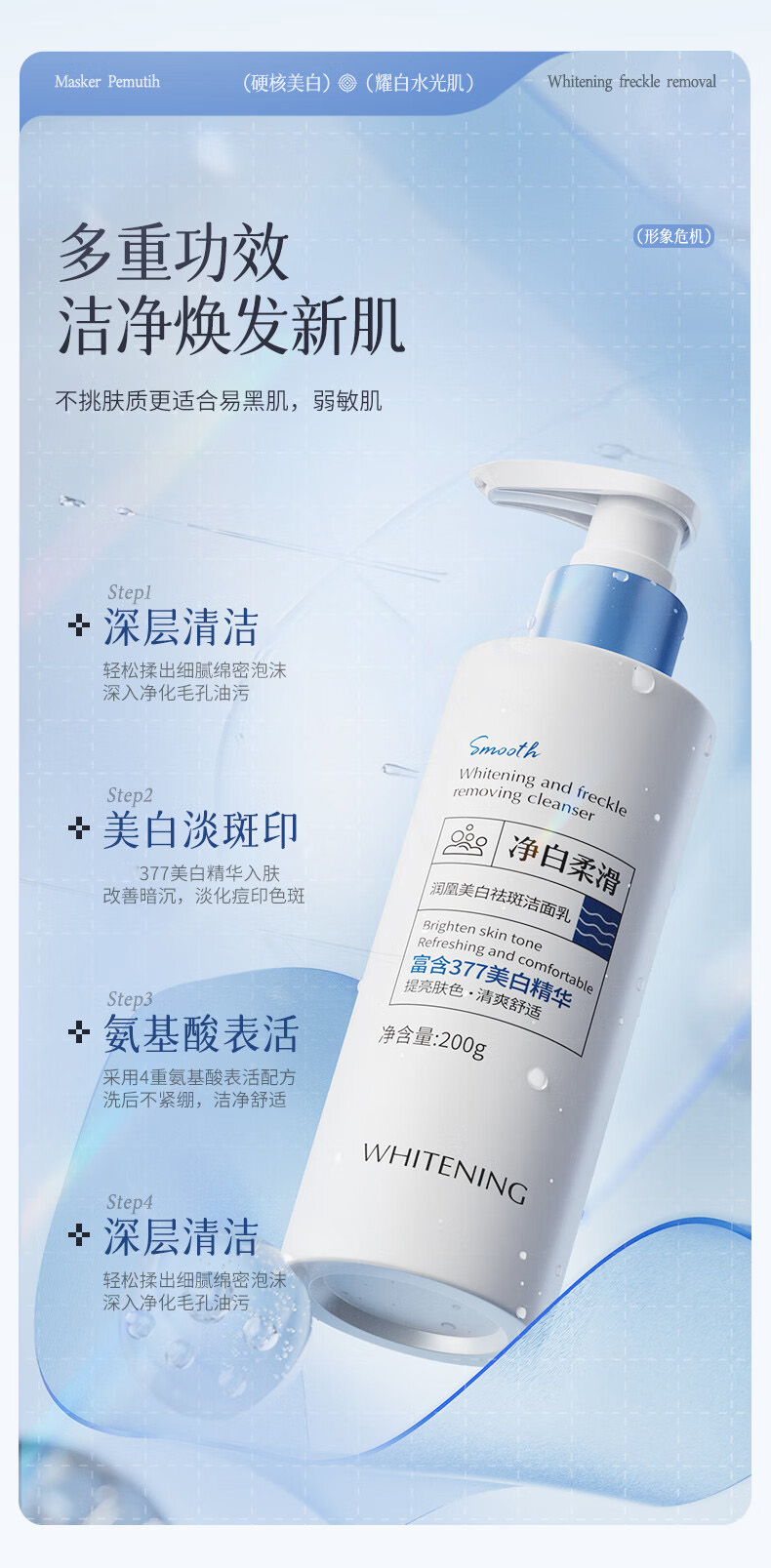 泊紫汀兰(Pozitilan) 377美白祛斑洁面乳 洗面奶 1瓶 200g 白色(单位:瓶)