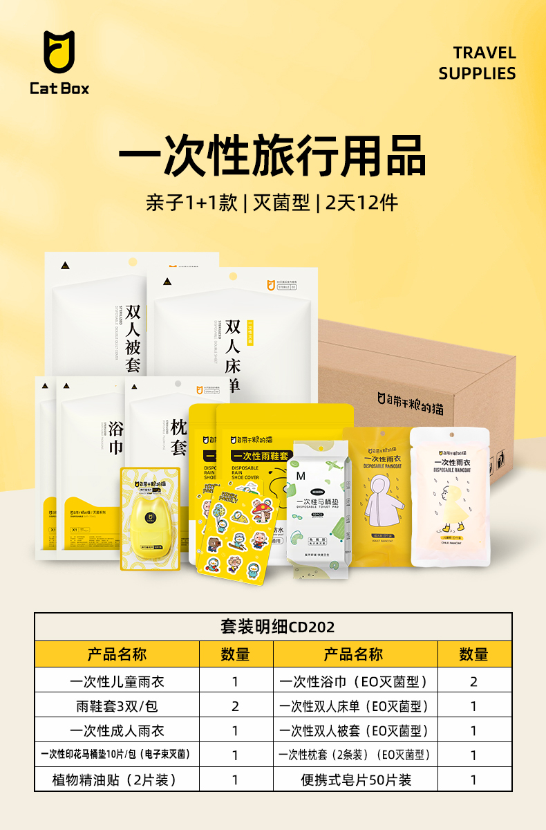 自带干粮的猫 一次性旅行用品 CD202 亲子1+1款2天12件(灭菌型) 白色(单位:套)