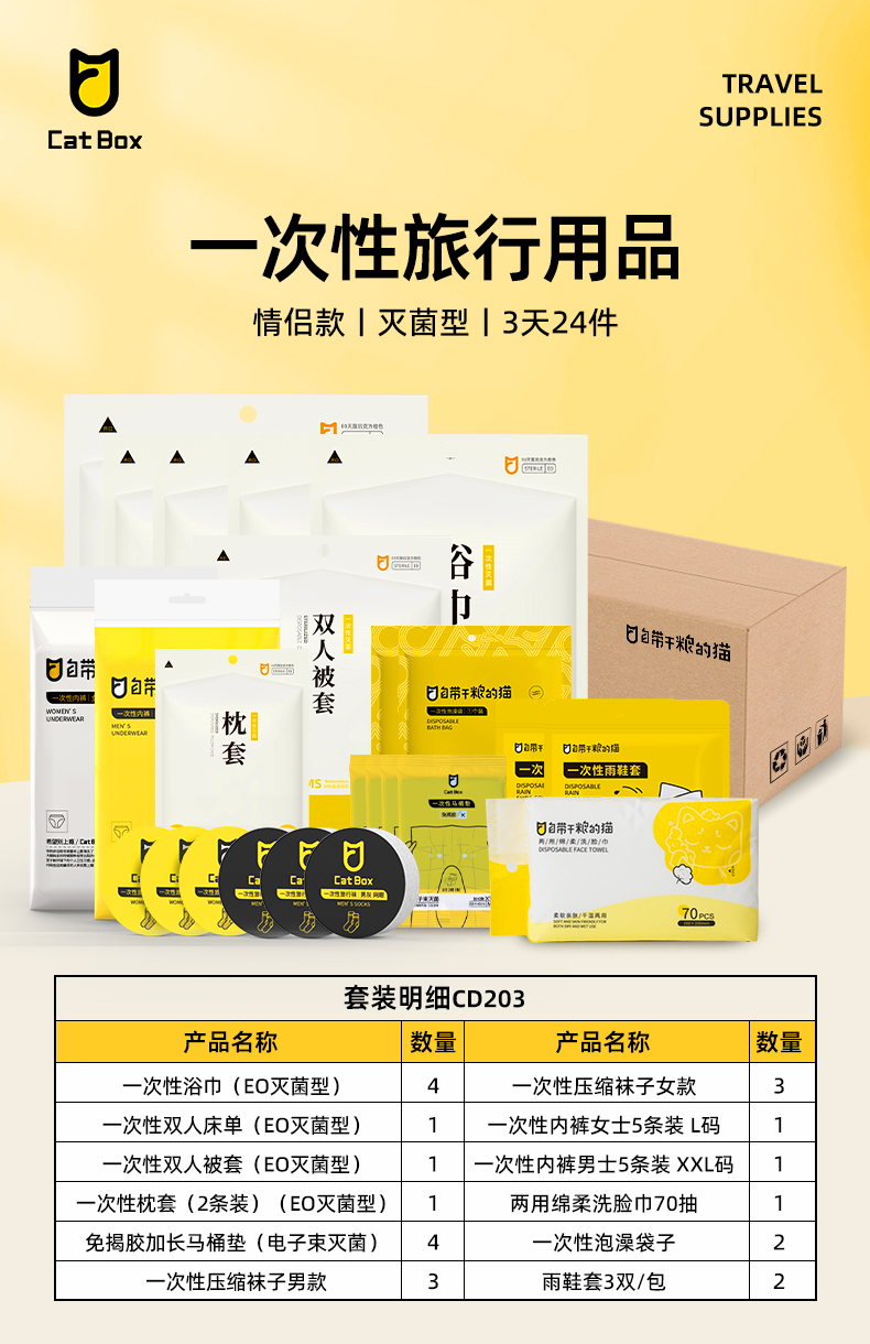 自带干粮的猫 一次性旅行用品 CD203 情侣款3天24件(灭菌型) 白色(单位:套)