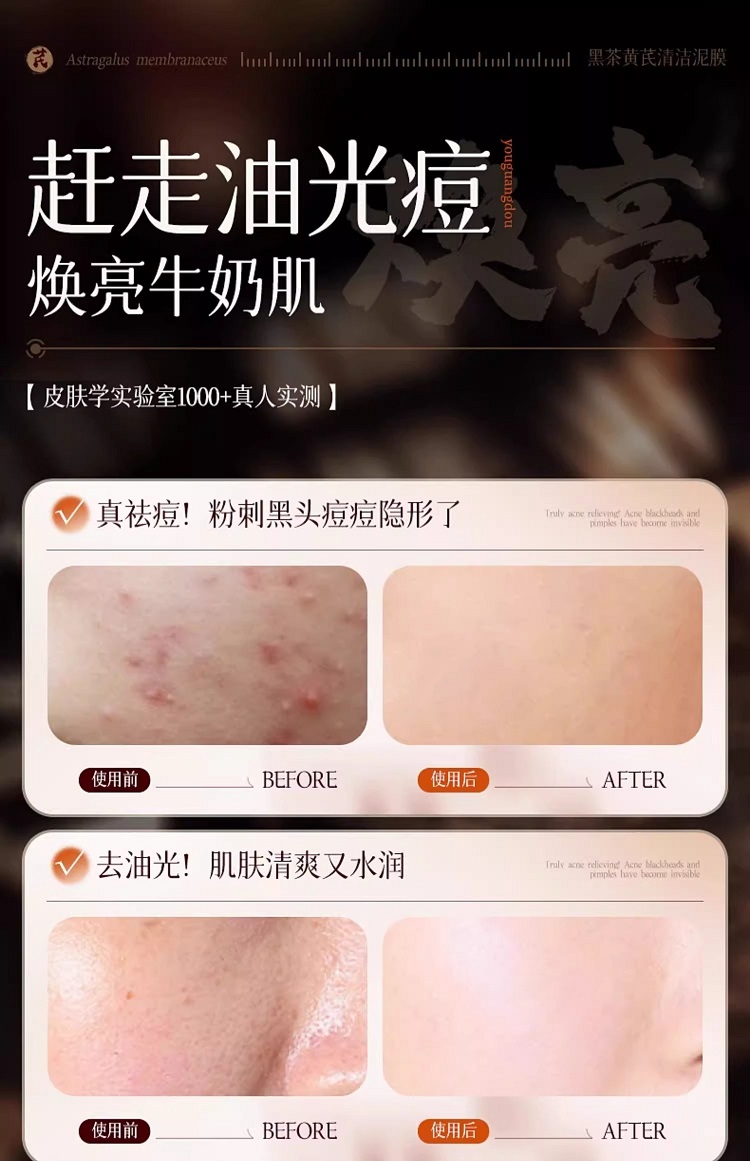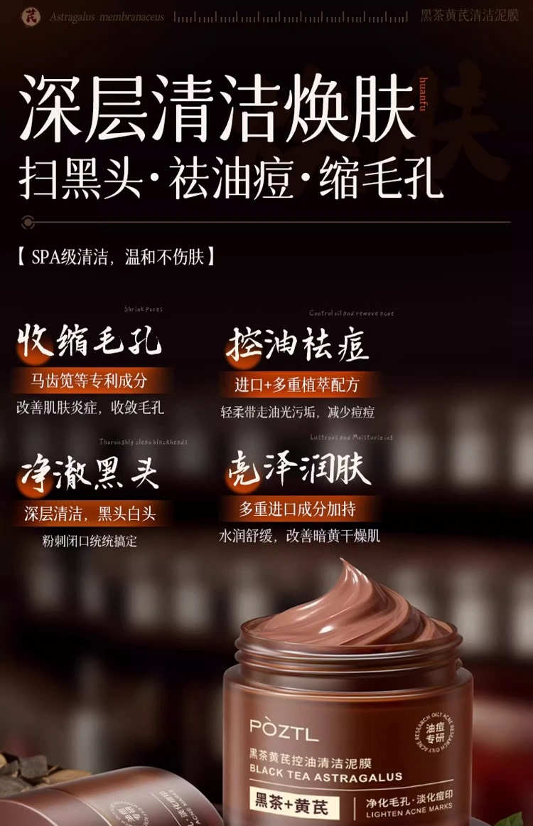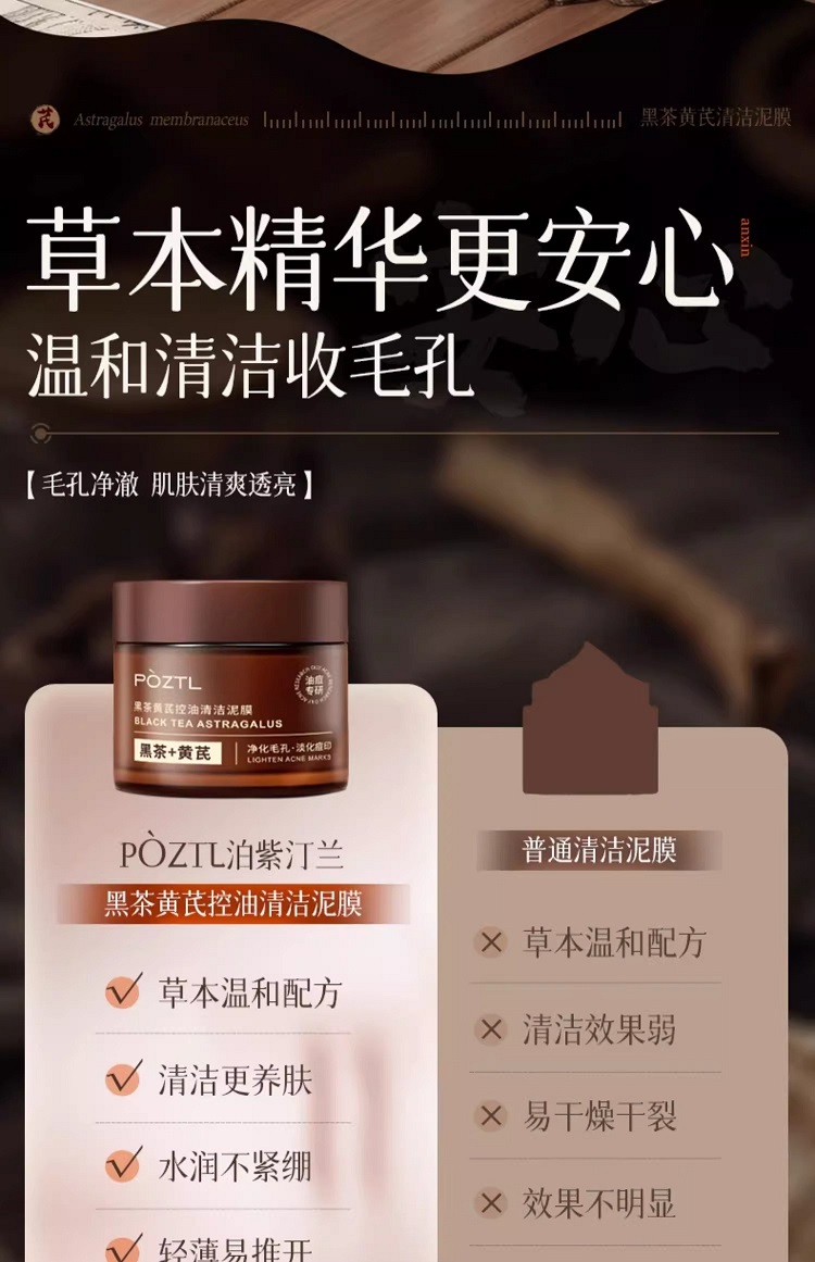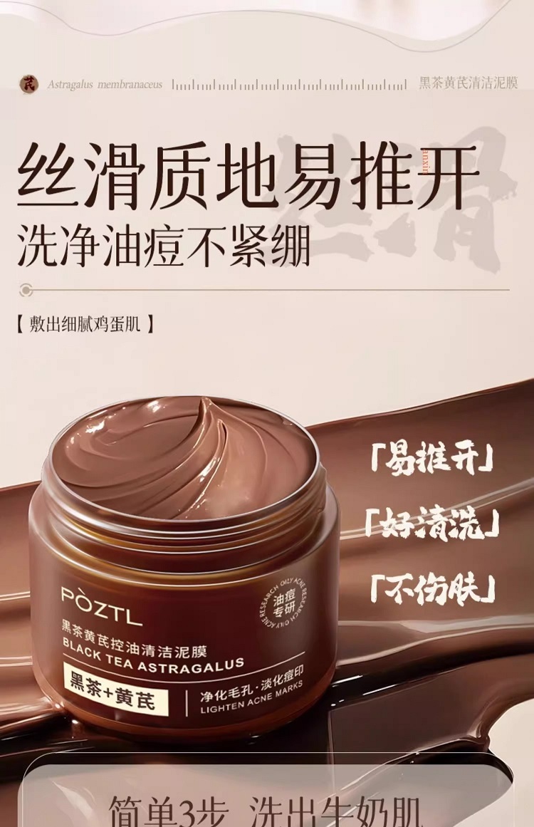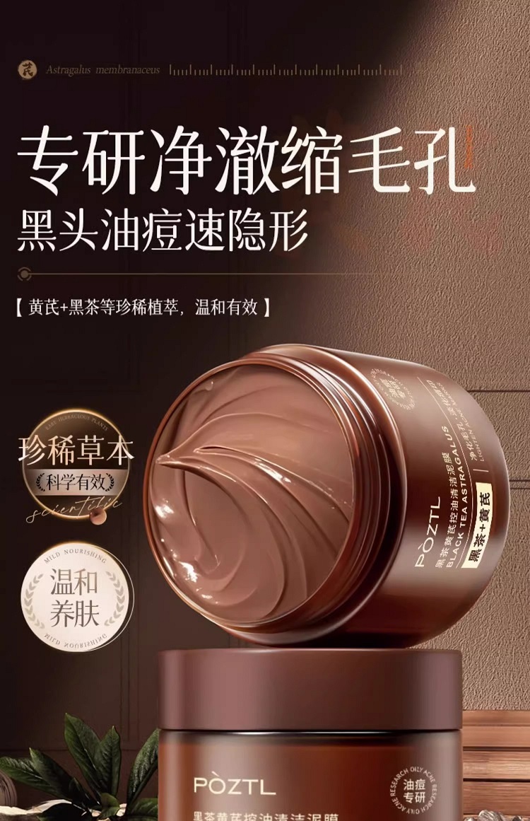 泊紫汀兰(Pozitilan) 黑茶黄芪清洁泥膜 面膜 涂抹式130g 深褐色(单位:罐)