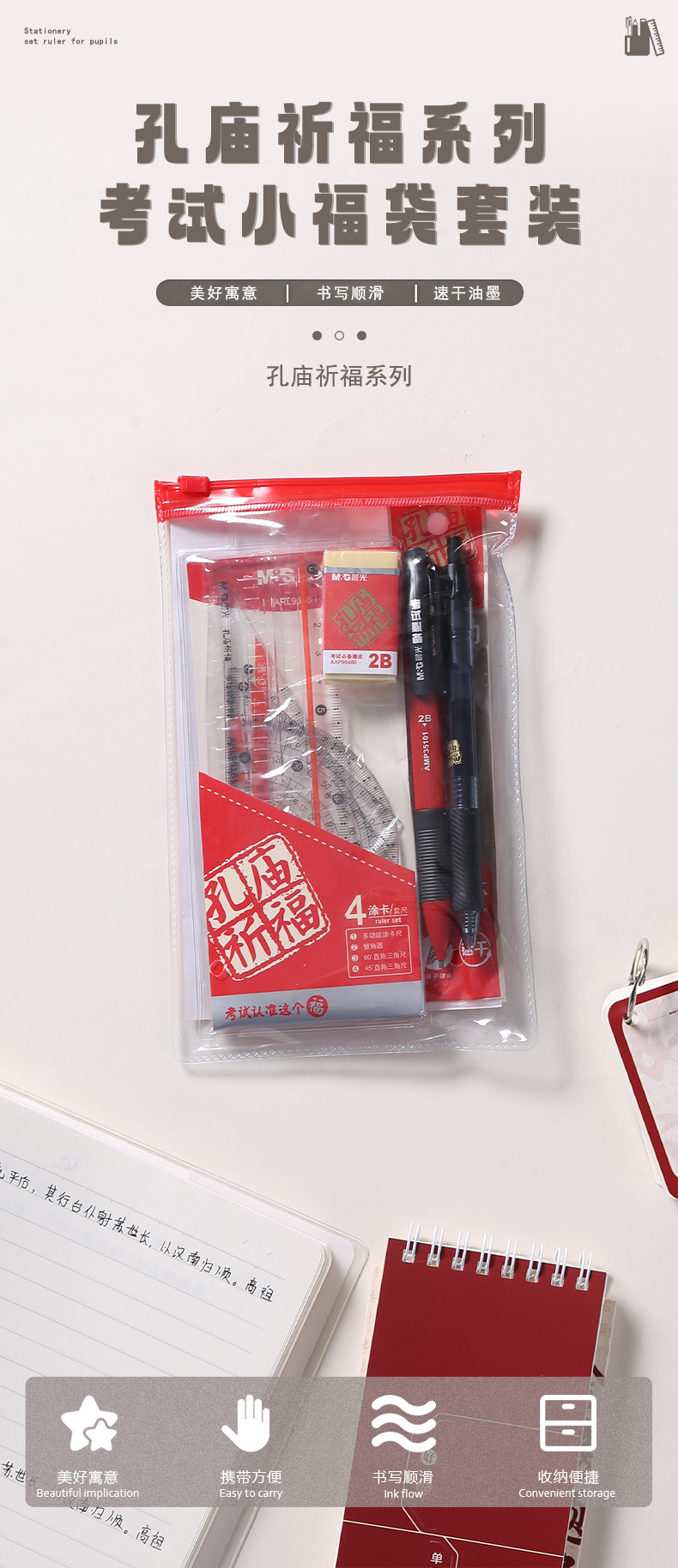 晨光(M&G) HAGP0696 9件套 孔庙祈福文具套装 红色(单位:套)