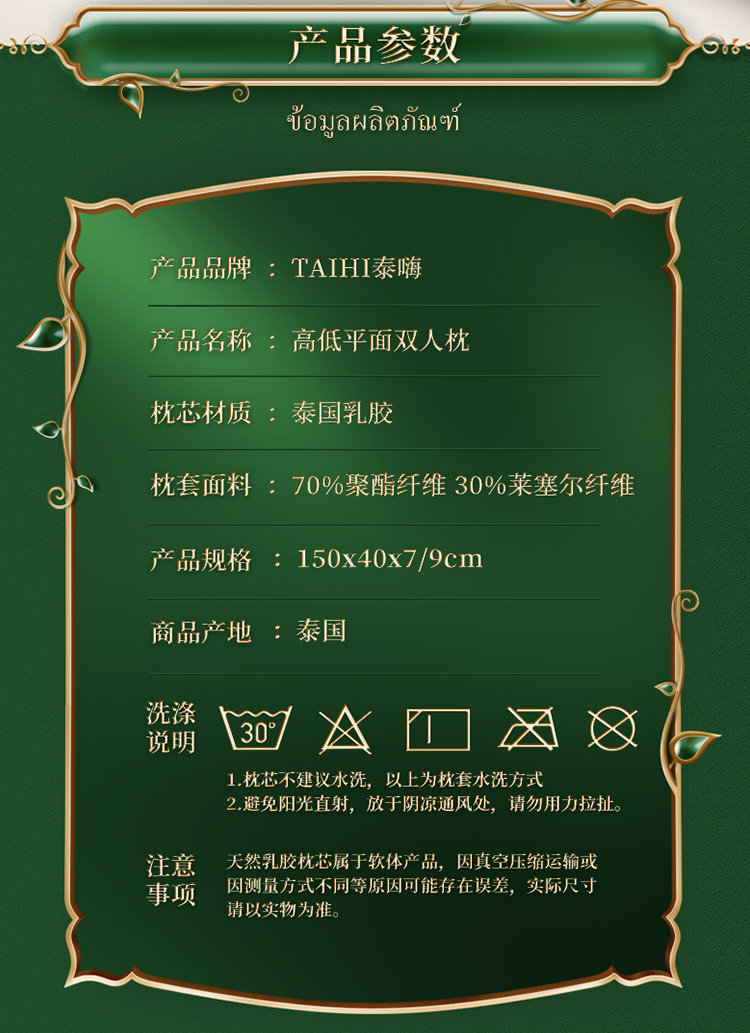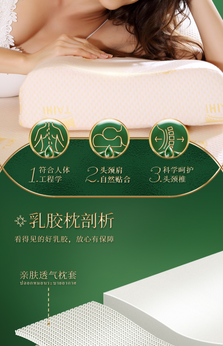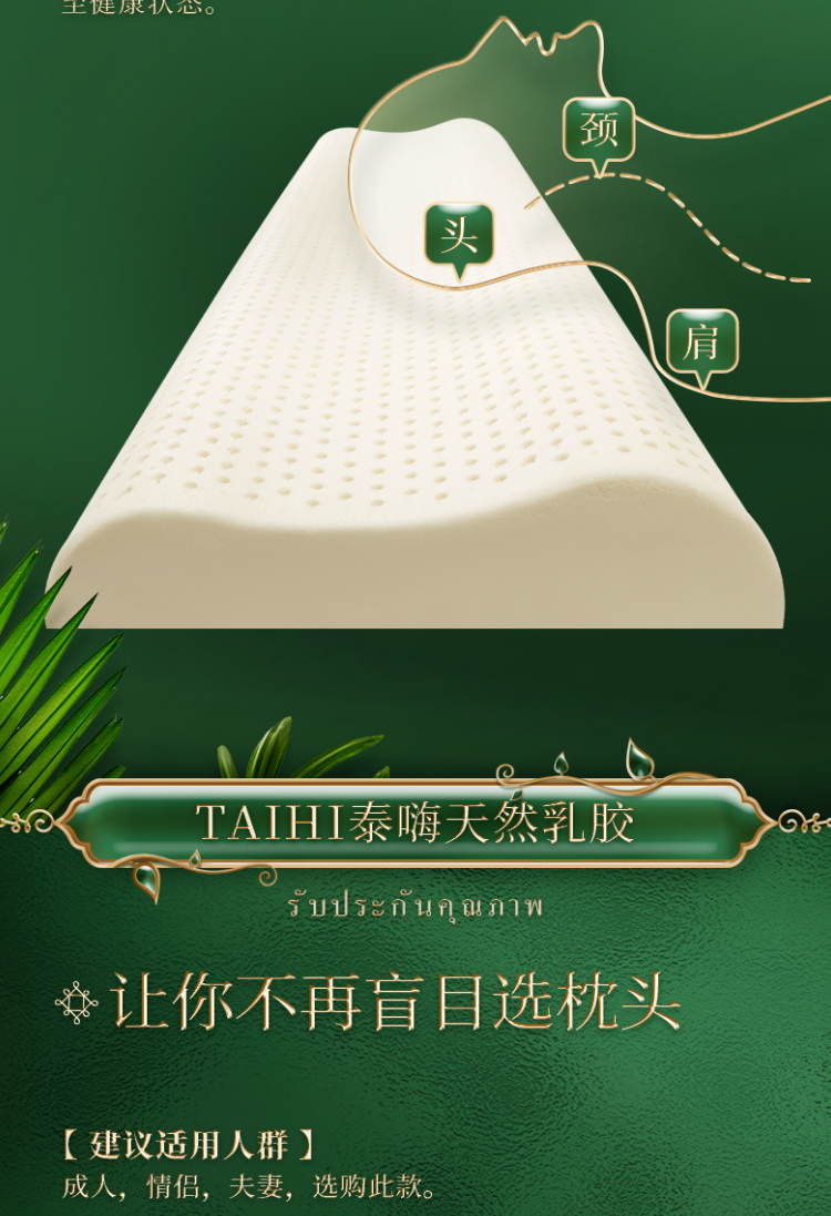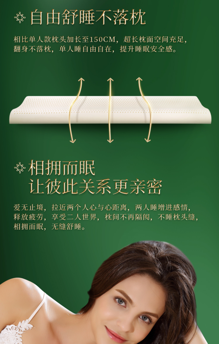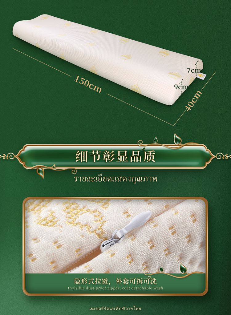泰嗨 双人情侣乳胶护颈长枕 TPAD1 长150cm*宽40cm*高7/9cm 白色(单位:个)