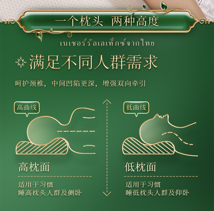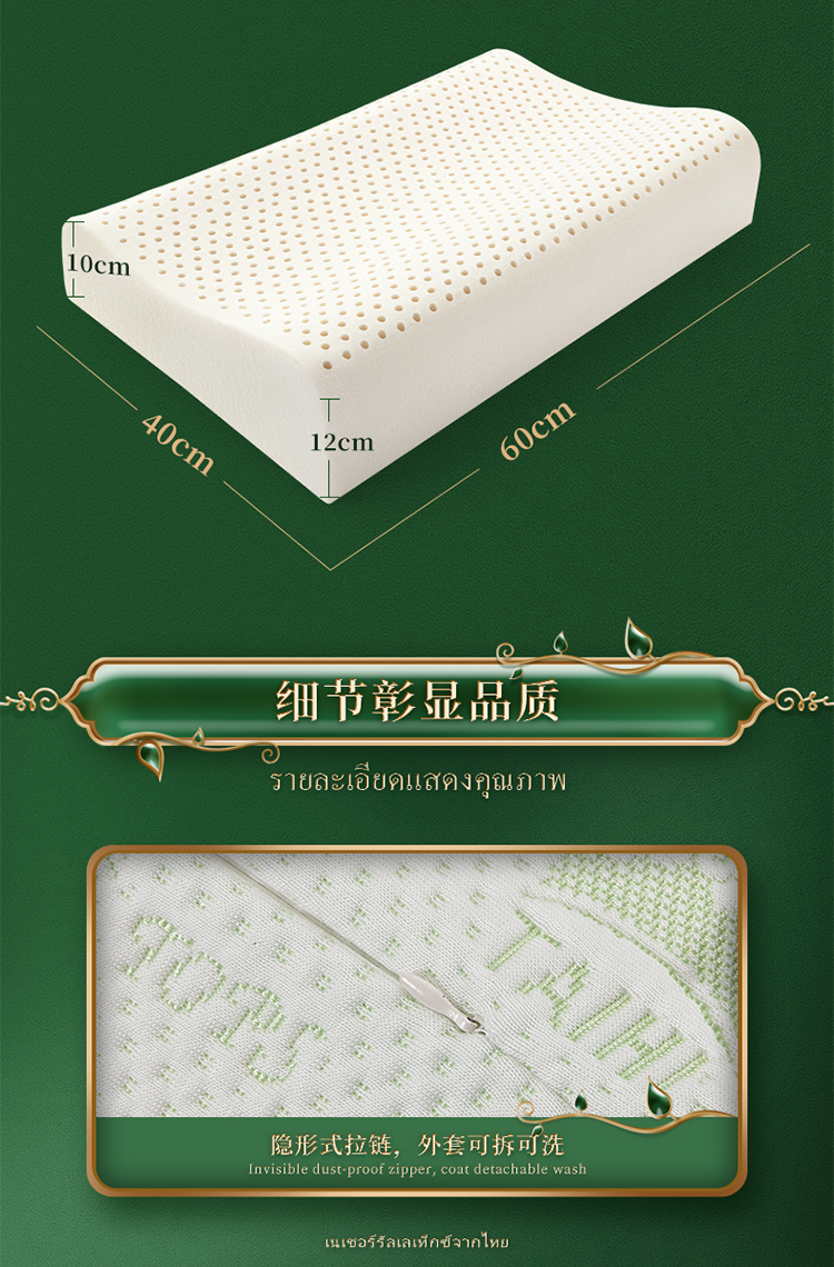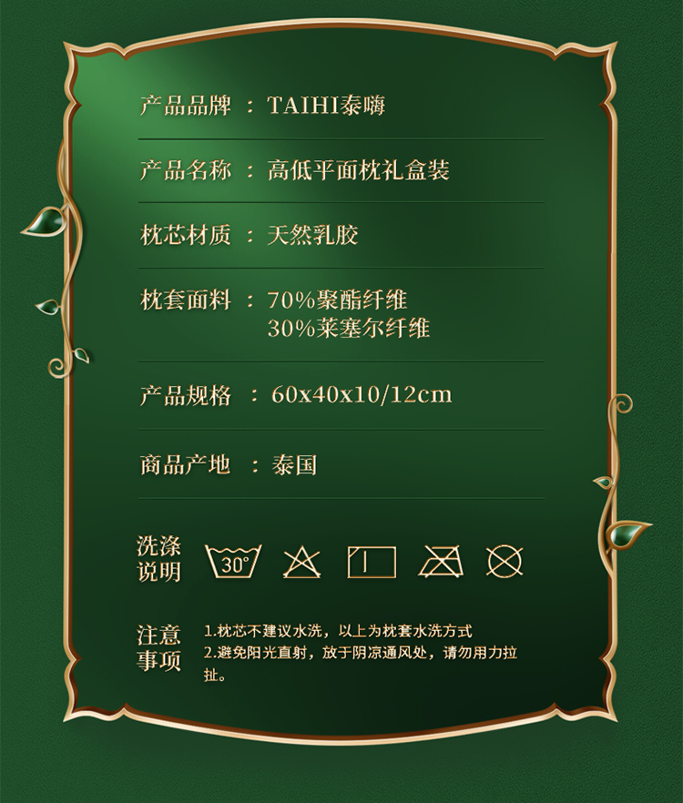 泰嗨 高低平面乳胶枕礼盒装 TPA33-05 (标准款)长60cm*宽40cm*高8/10cm 白色(单位:个)