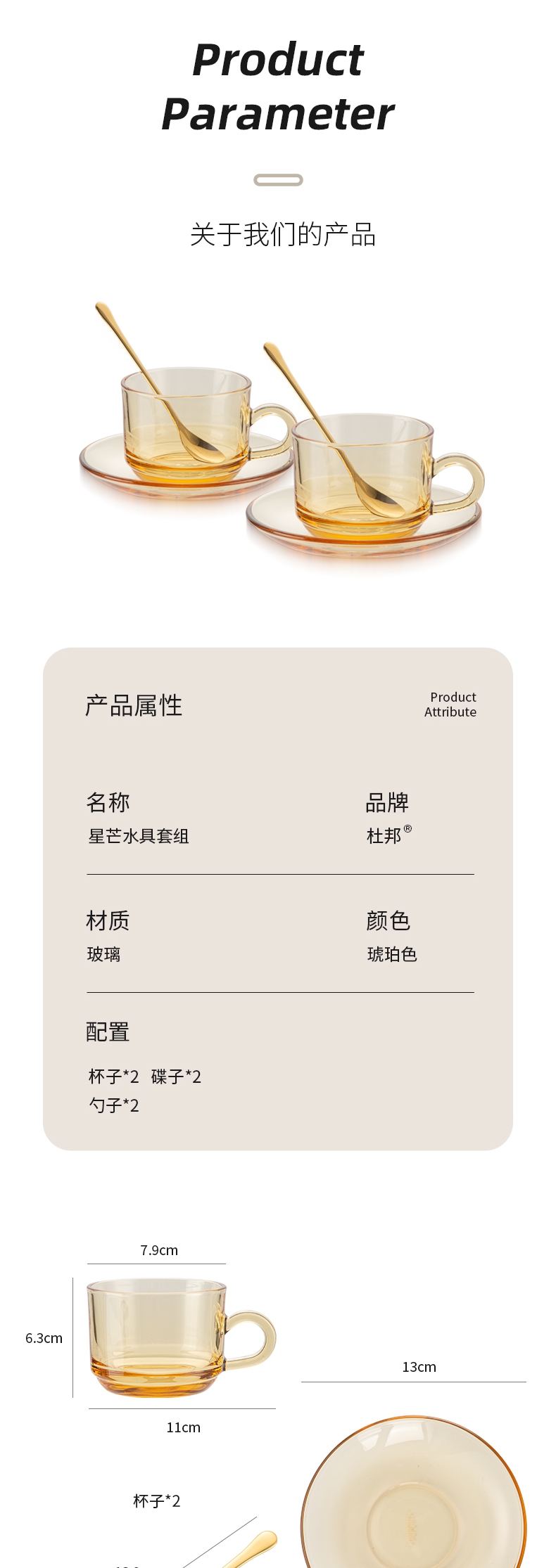 杜邦(DUPONT) PSJ-706 6件套 星芒茶具套组 琥珀色(单位:套)
