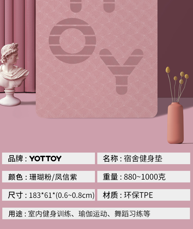 YOTTOY 明星系列便携瑜伽垫61cm Atpeshf61186 6mm 珊瑚粉(单位:条)
