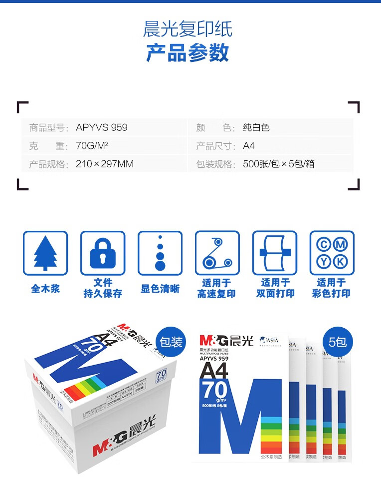 晨光(M&G) 蓝晨光复印纸 APYVS959B A4 70克 500张/包5包/箱 白色(单位:箱)