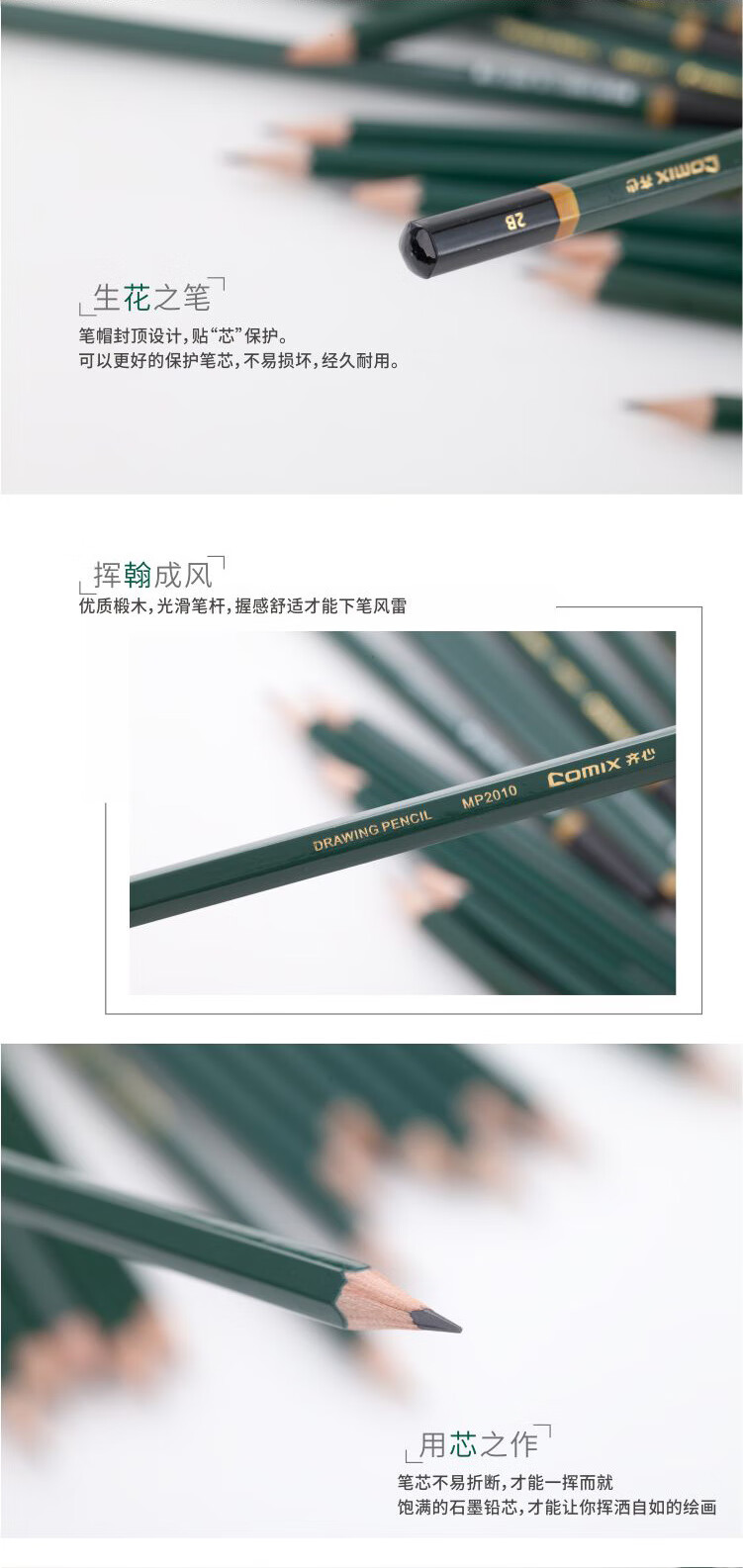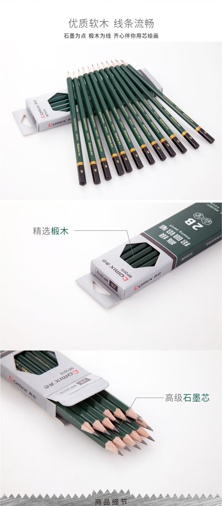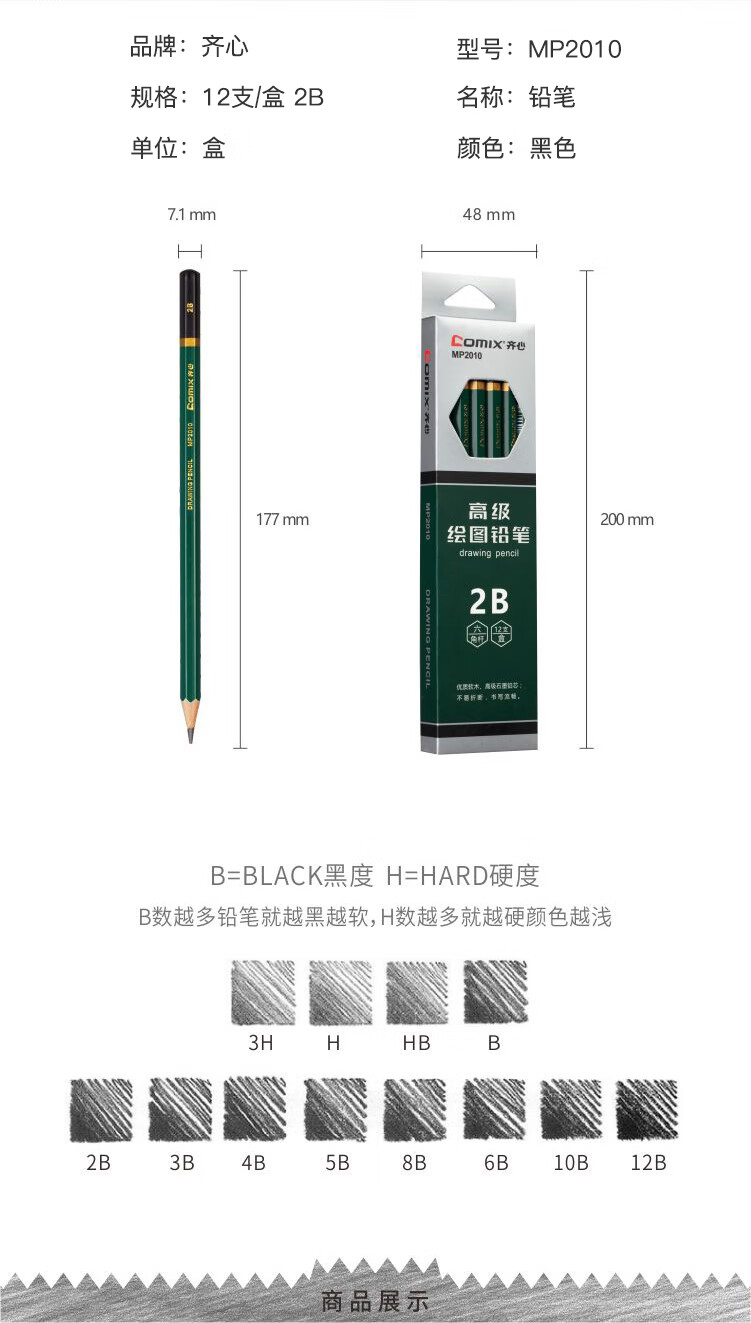 齐心(COMIX) 2B 铅笔 MP2010 12支/盒 黑色(单位:盒)