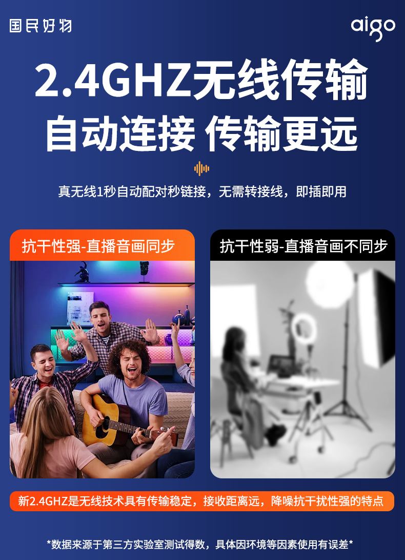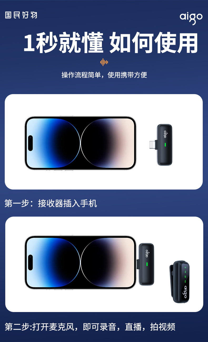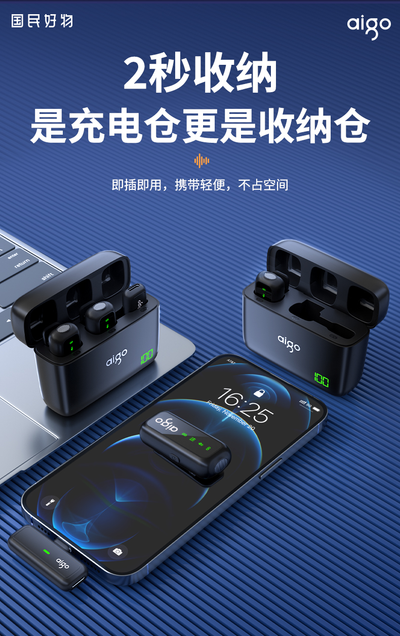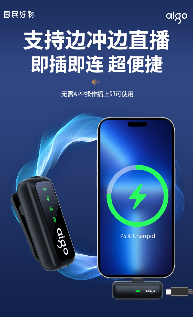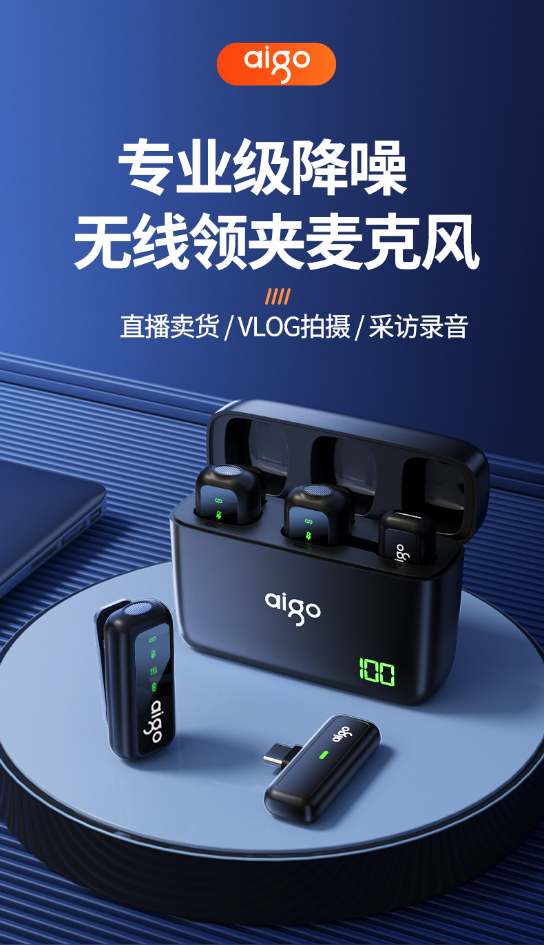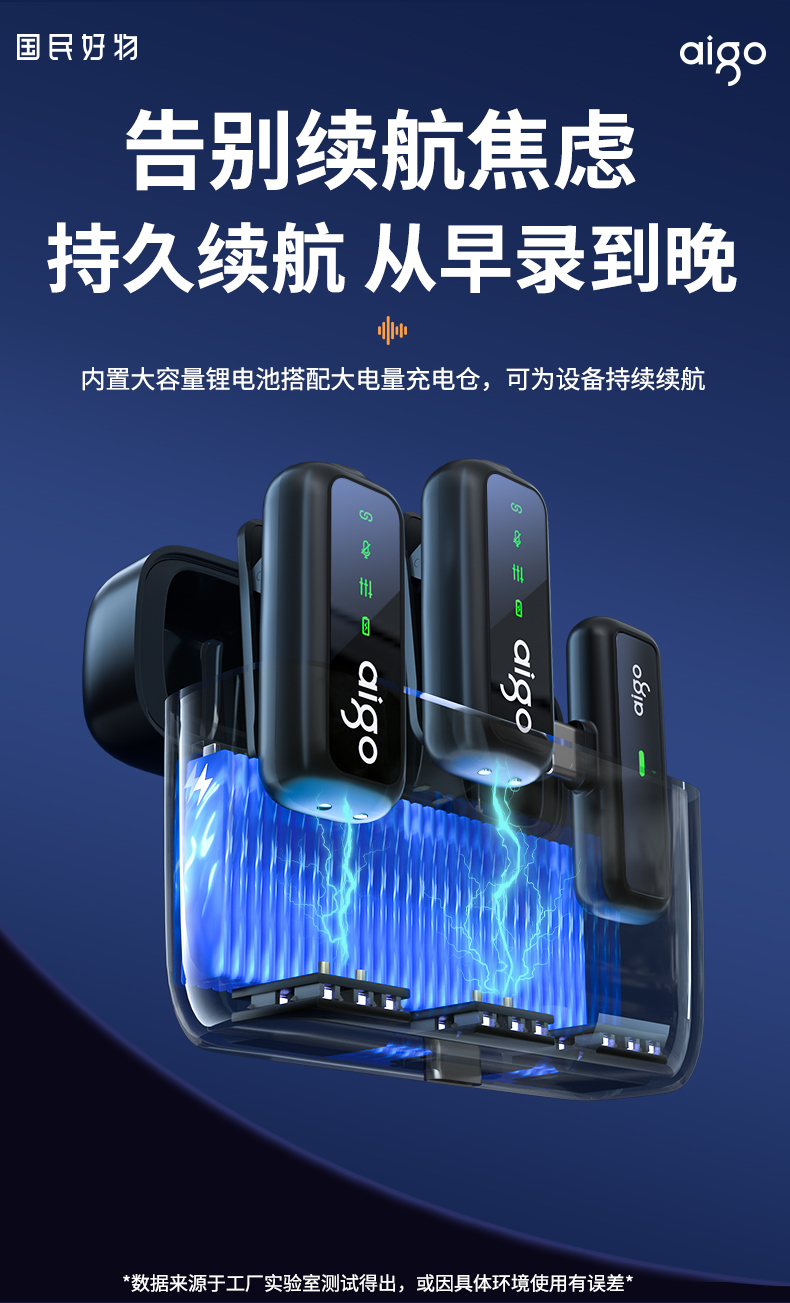 爱国者(aigo) S21 20m传输 无线领夹麦克风 黑色(单位:个)
