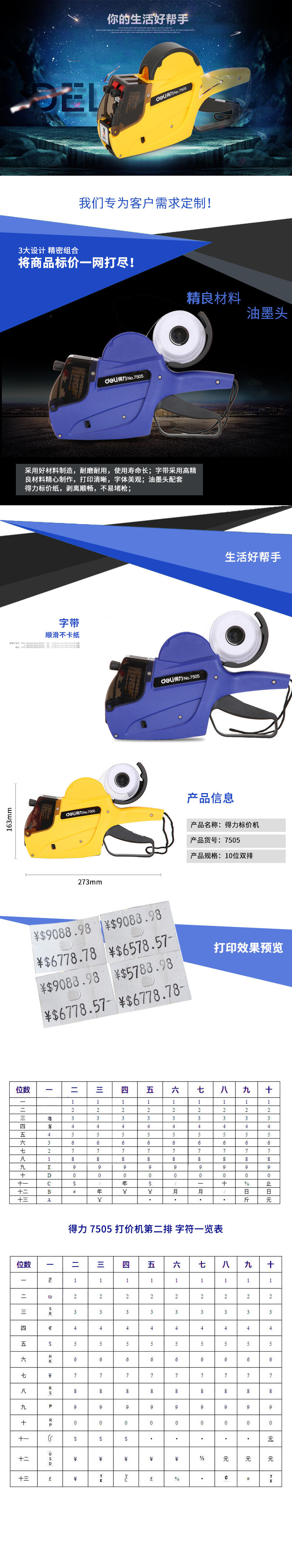 得力(deli) 标价机 7505 10位双排 黄色(单位:台)