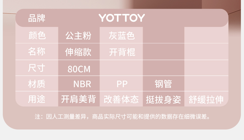 YOTTOY 伸缩款开背棍 Y09011A009080 80cm 公主粉(单位:个)