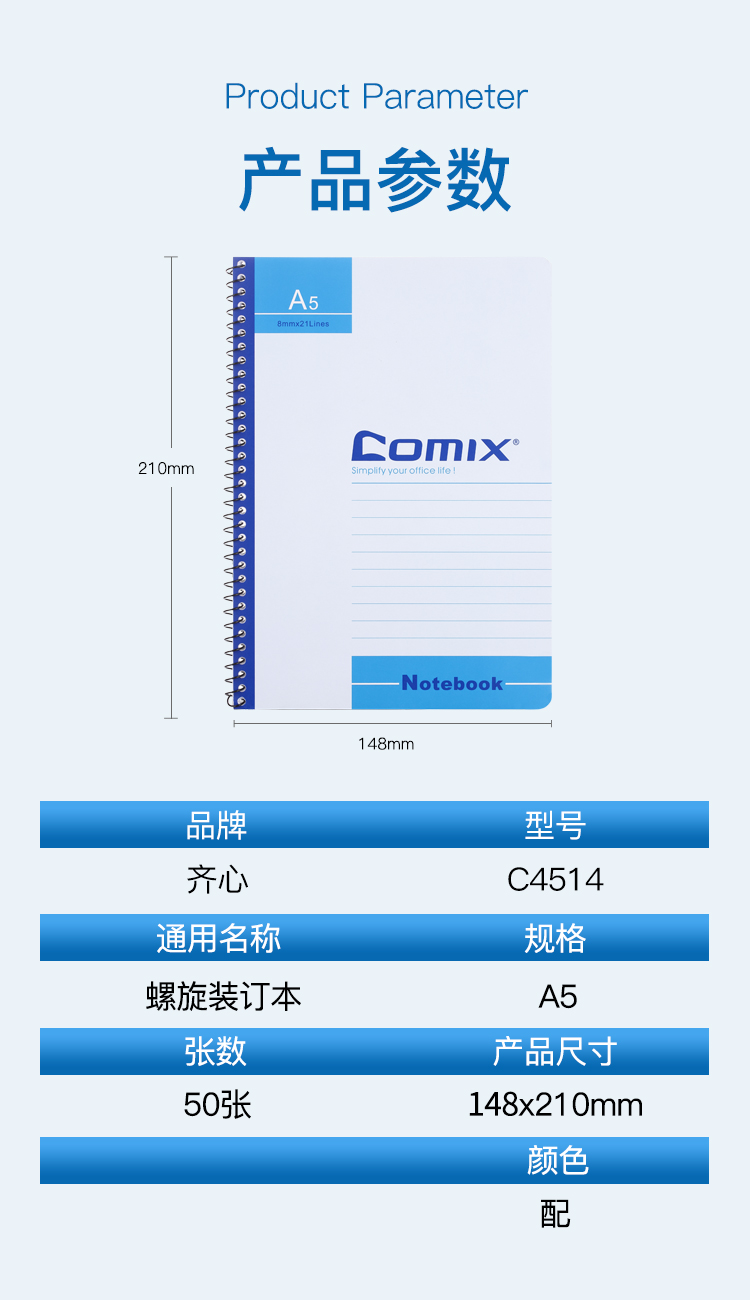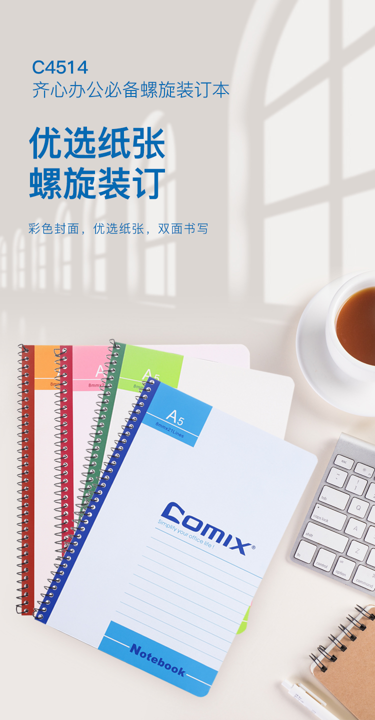 齐心(COMIX) 办公系列单螺旋本 C4514 A5 50张 12本 混色(单位:套)