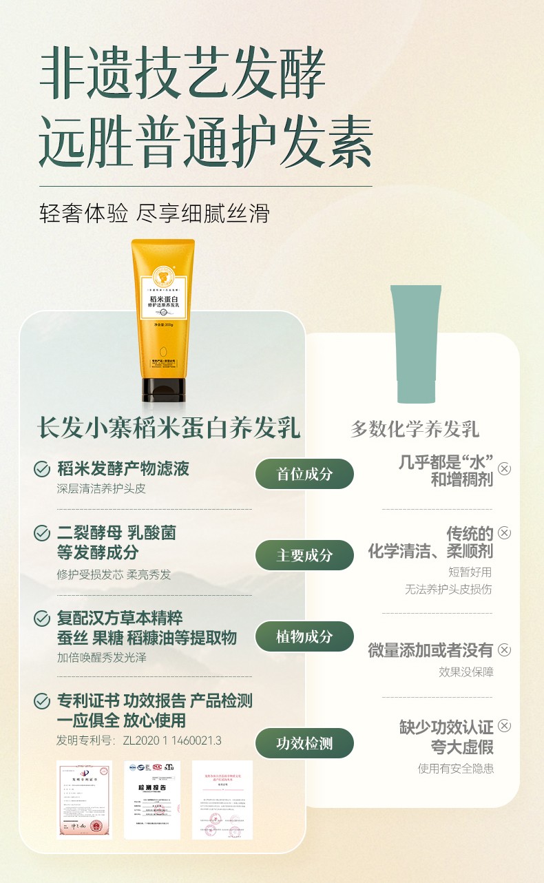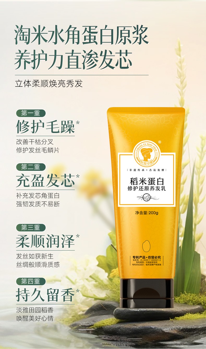 长发小寨 滋润柔顺 200g 淘米蛋白养发乳 玫瑰金(单位:瓶)