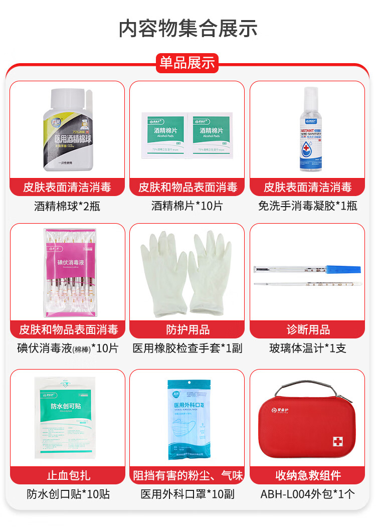 爱备护(AIBEIHU) 急救包套装 ABH-L004M 46件 红色(单位:套)