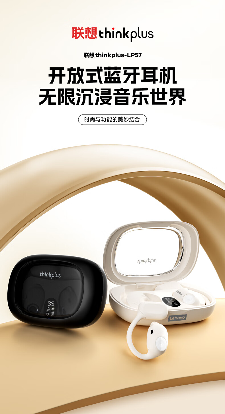 联想(Lenovo) 开放式蓝牙耳机 LP57 16.2mm 黑色(单位:副)