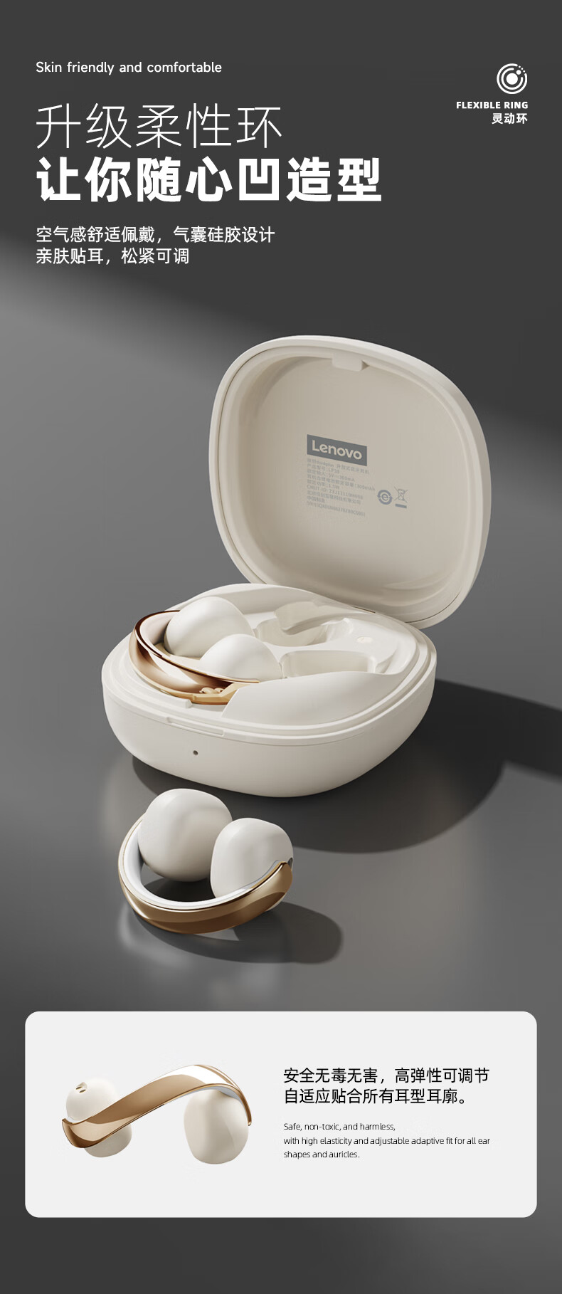 联想(Lenovo) 开放式蓝牙耳机 LP38 13.6mm 银色(单位:副)
