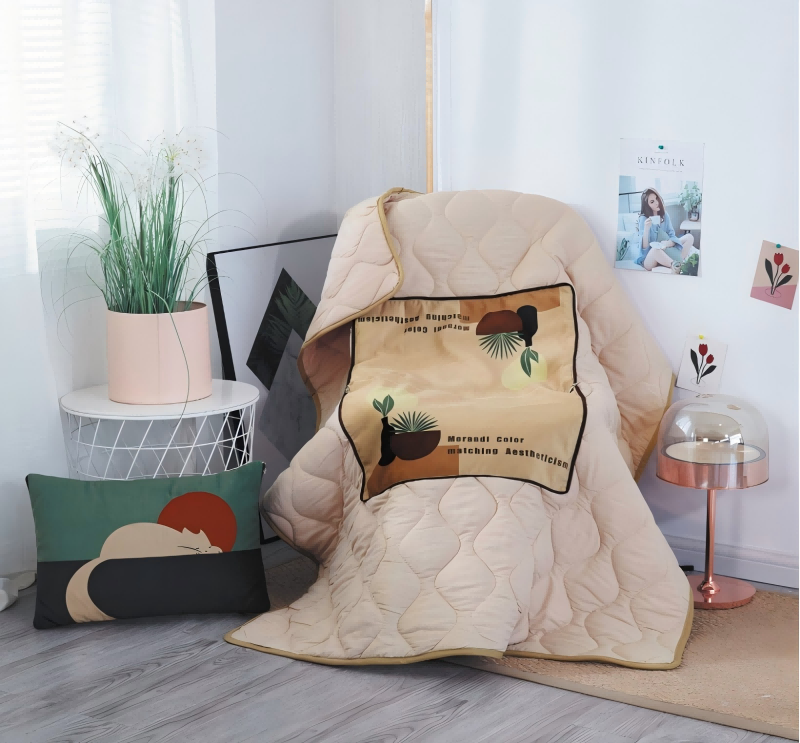 安娜艾莎(ANNA AISHER) 妙笔生花腰靠抱枕被 滚边工艺 展开120*150CM 卡其色(单位:条)