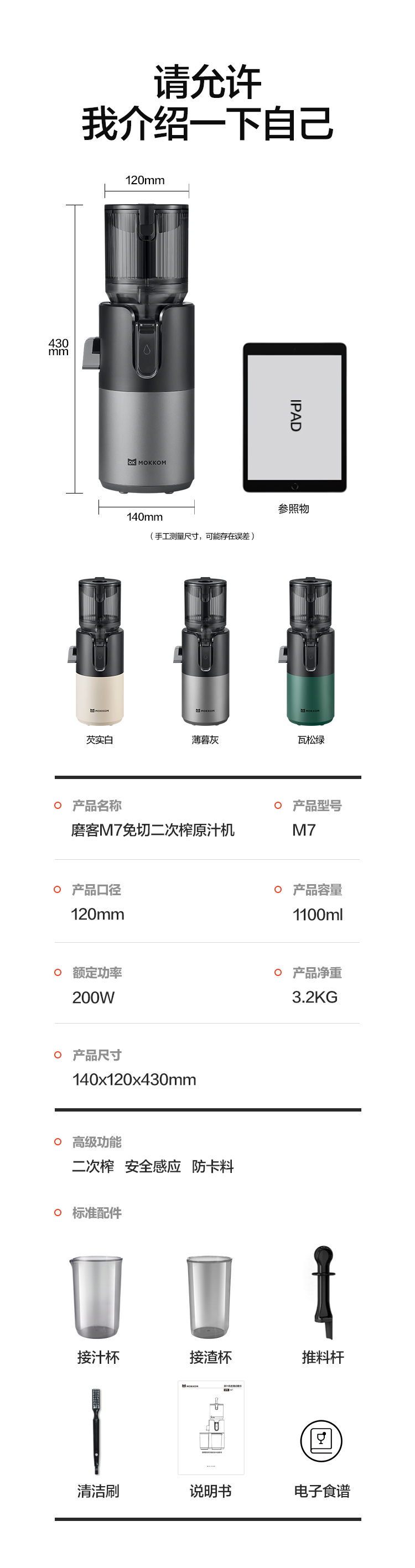 磨客(MOKKOM) M7-G 1100ML 榨汁机 薄暮灰(单位:台)