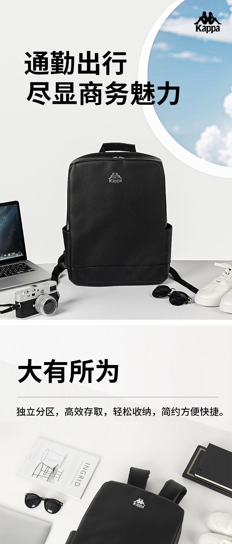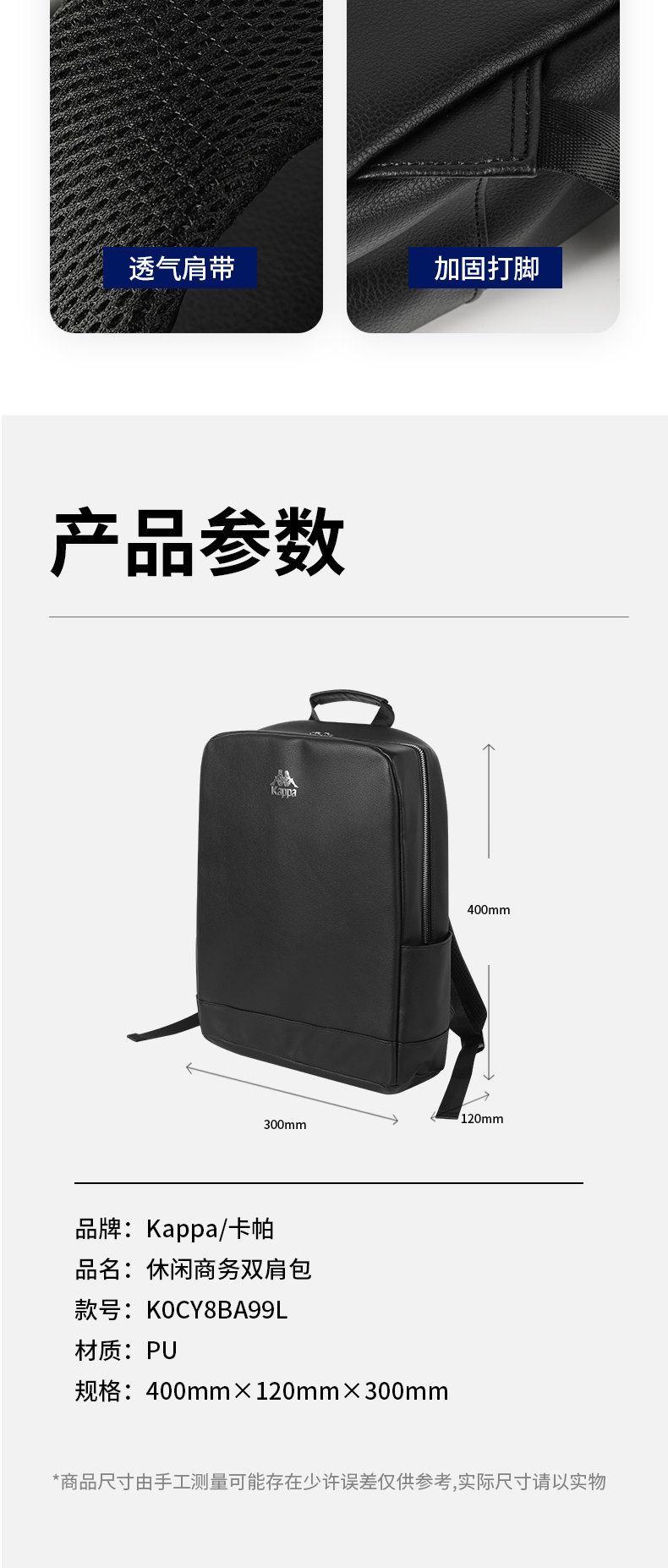 KAPPA 休闲商务双肩包 K0CY8BA99L 40x12x30cm 黑色(单位:个)