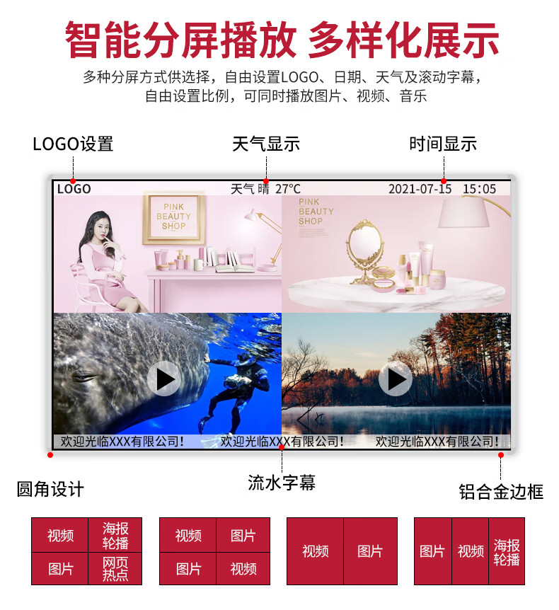 酷彩商显 CXC550JW1B 液晶拼接屏55英寸1.8mm拼缝高清显示屏安防监控会议大屏幕一年质保