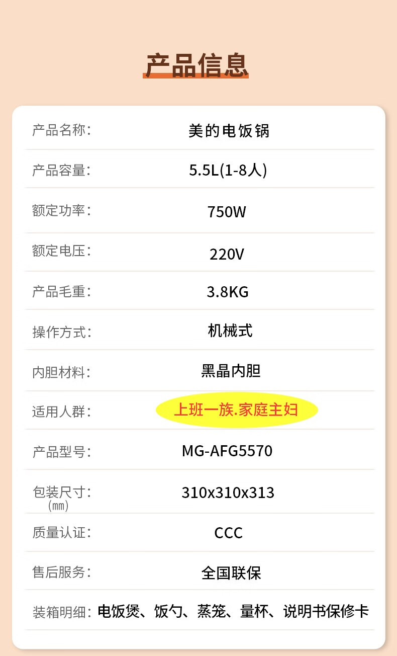 美的(Midea) 电饭煲 MG-AFG5570 5.5L 钢色(单位:台)