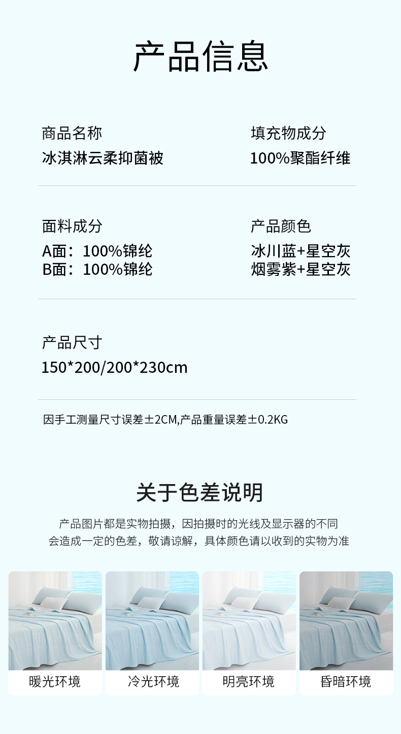 泰嗨 冰淇淋抑菌锦纶夏凉被 TTBQL03-HZ-200 【双人被】200cm*230cm 200cm*230cm 紫灰(单位:床)