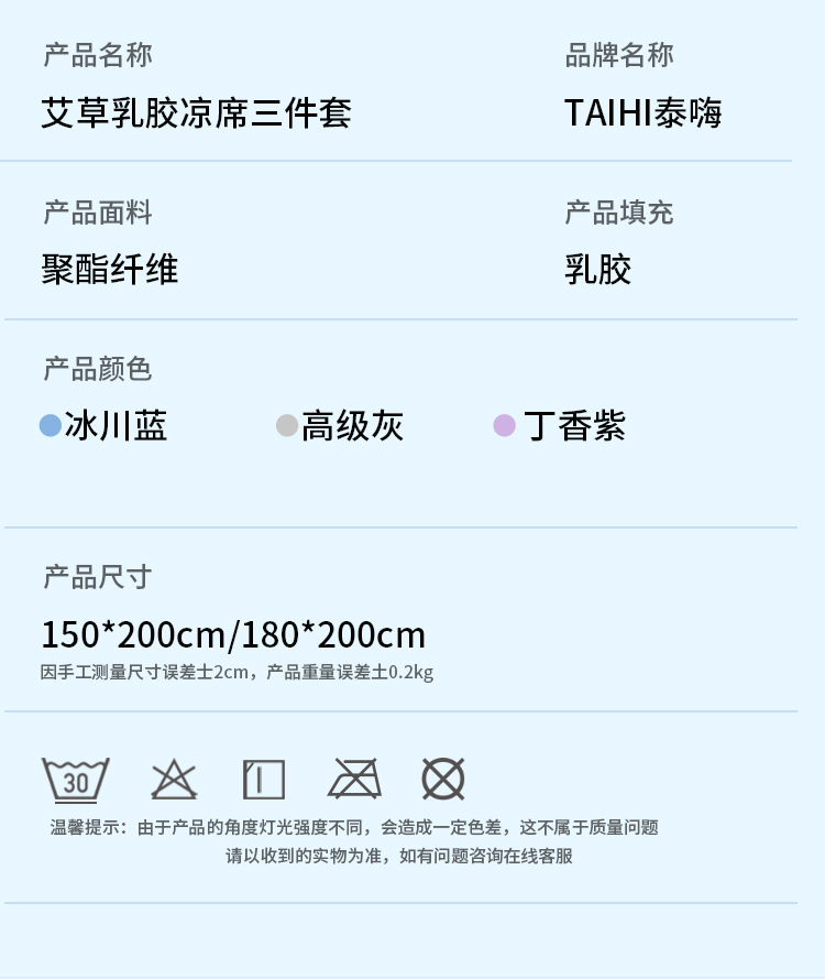 泰嗨 加厚乳胶凉席三件套 THLX22X-180 180cm*200cm 1.8米床 高级灰(单位:套)