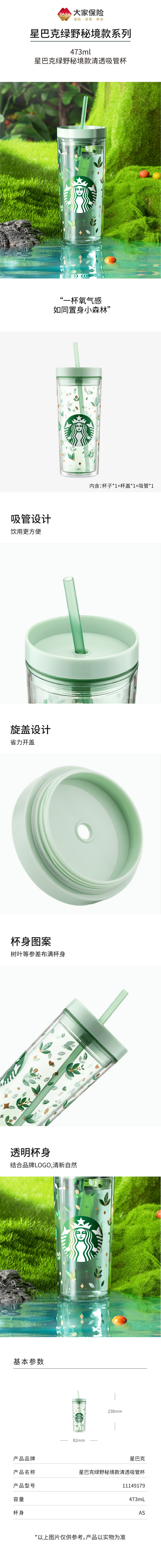 星巴克(Starbucks) 绿野秘境款清透吸管杯 11149179 473ml 绿色(单位:个)