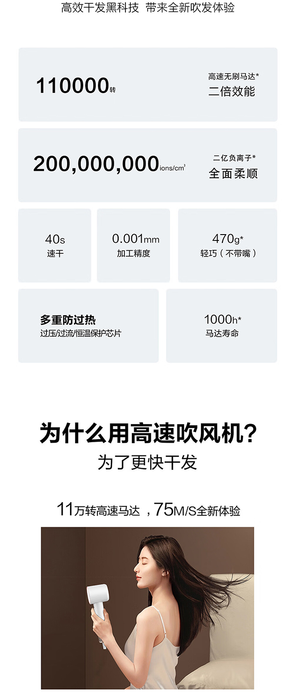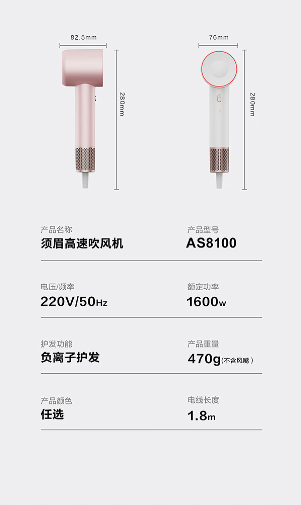须眉 高速电吹风 AS8100 1600W 白色(单位:台)