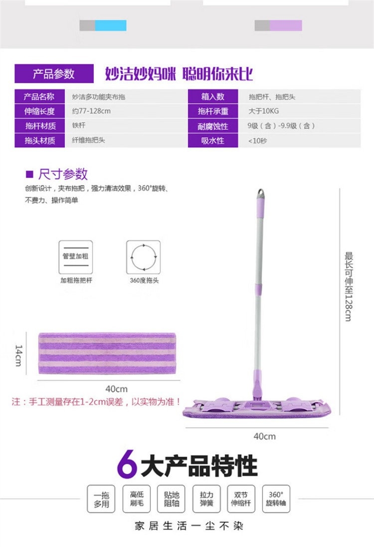 妙洁(MIAOJIE) 夹布拖(EC) 家用一拖净大懒人拖地 45cm 混色(单位:把)