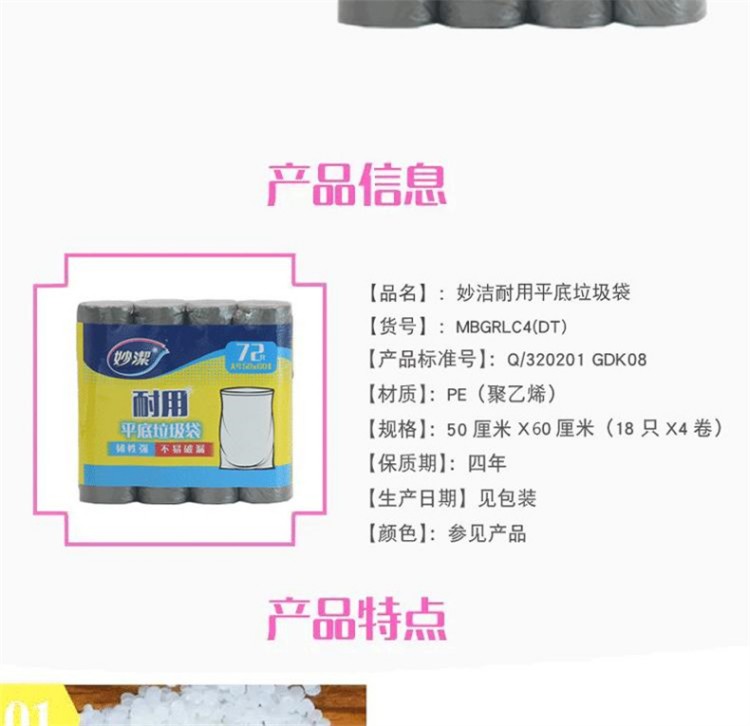 妙洁(MIAOJIE) 垃圾袋 1.0丝点断式大号 50*60cm72只 黑色(单位:袋)