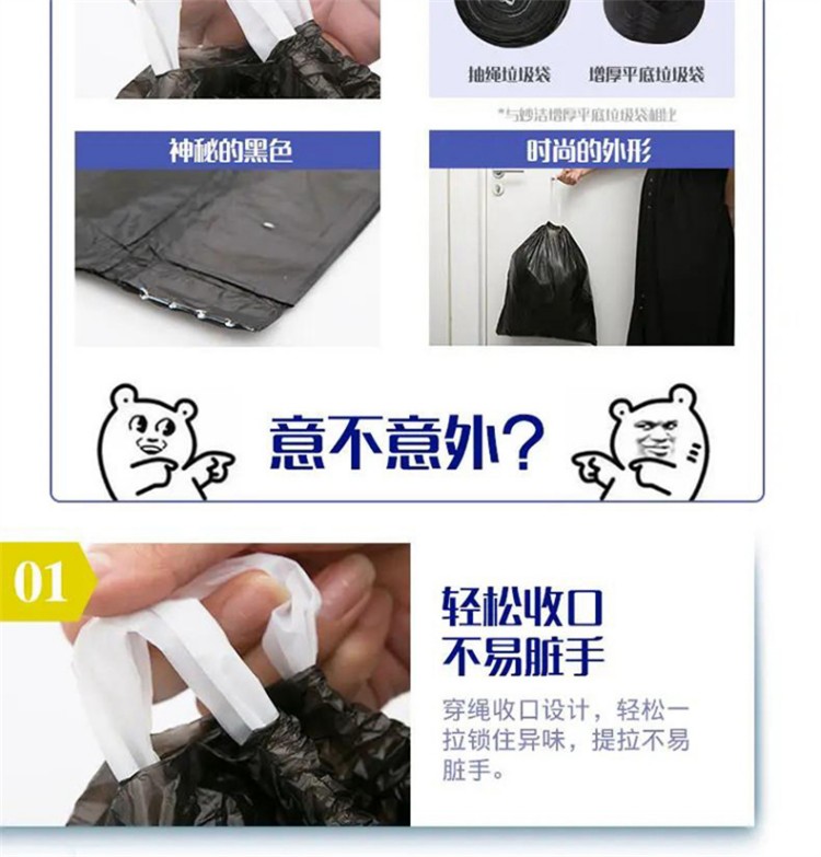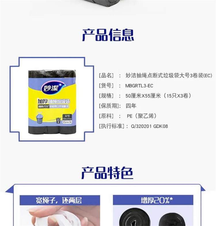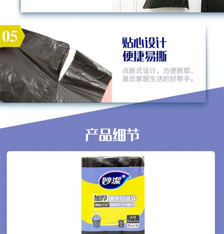 妙洁(MIAOJIE) 垃圾袋 大号手提式加厚 45只 黑(单位:袋)