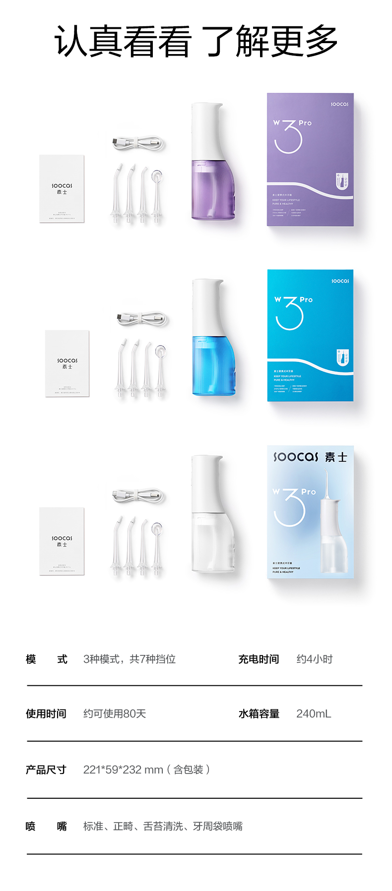 素士 便携式冲牙器 W3PRO 240ML 白色(单位:台)