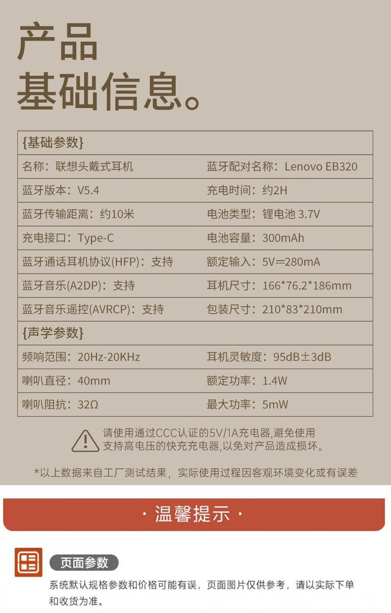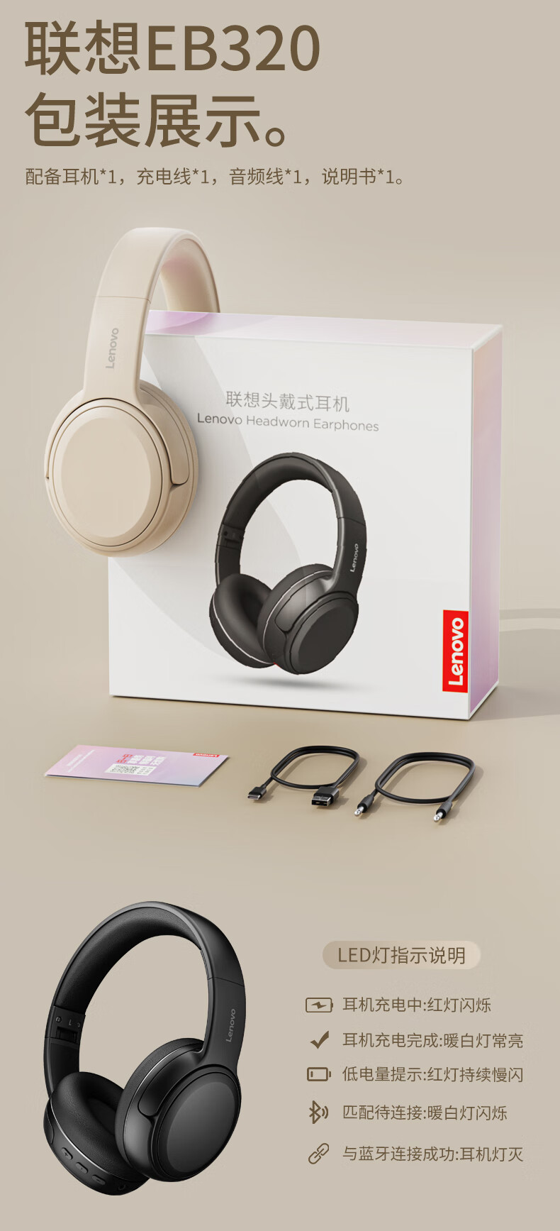 联想(Lenovo) 蓝牙耳机 EB320 350g 黑色(单位:个)