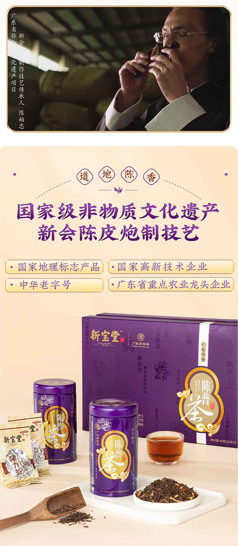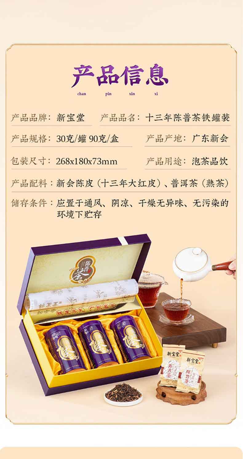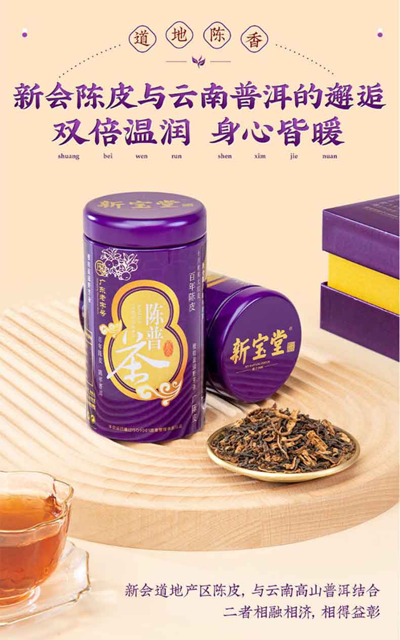 新宝堂 十三年陈皮 普洱茶 铁罐礼90g 紫色(单位:罐)