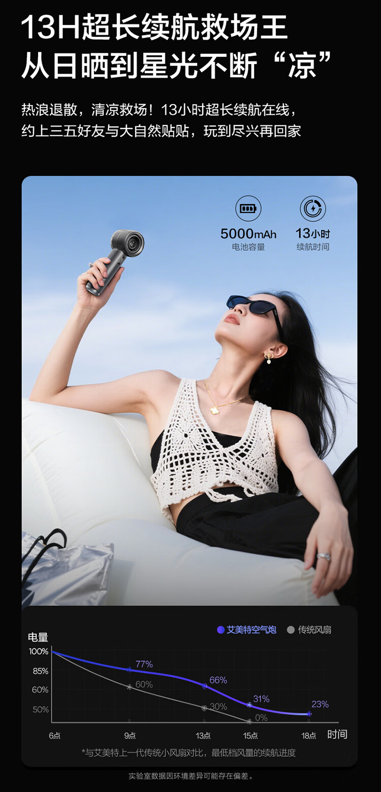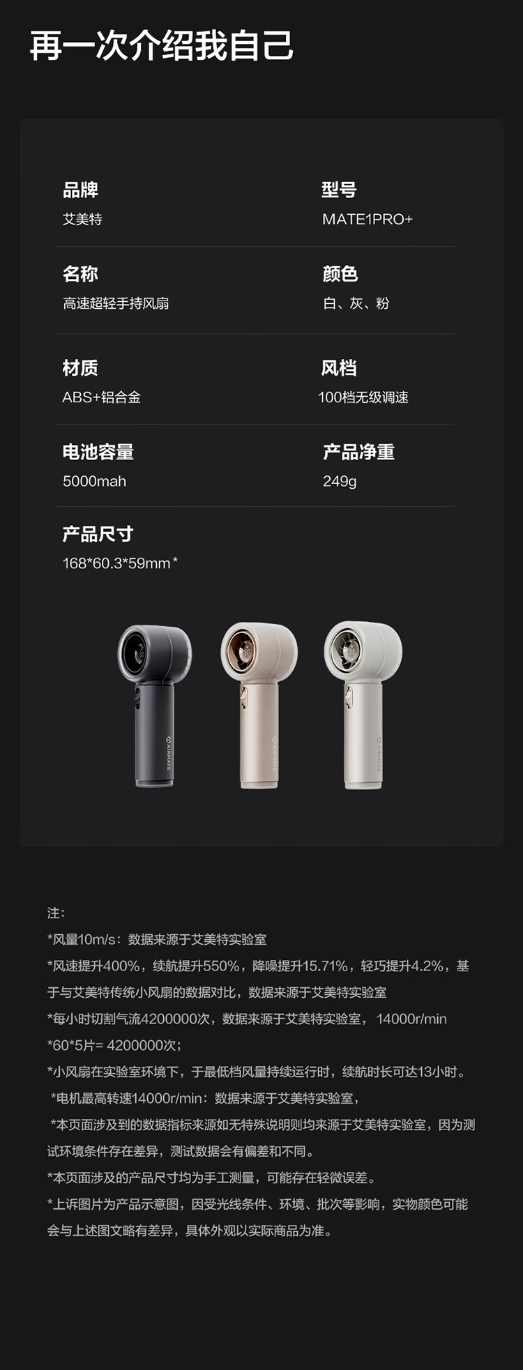 艾美特(AIRMATE) 手持小风扇 MATE1PRO+ 5000mah 钢琴白(单位:台)