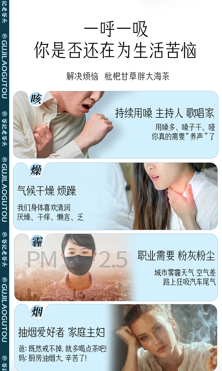 谷记老谷头 枇杷甘草胖大海茶 清润呼吸 450g 浅绿色(单位:盒)