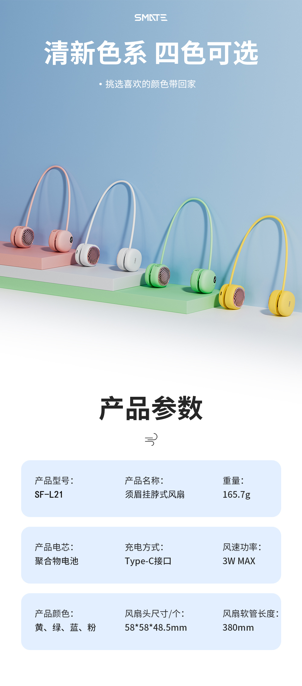 须眉 挂脖小风扇 SF-L21 1000mAh 粉色(单位:台)
