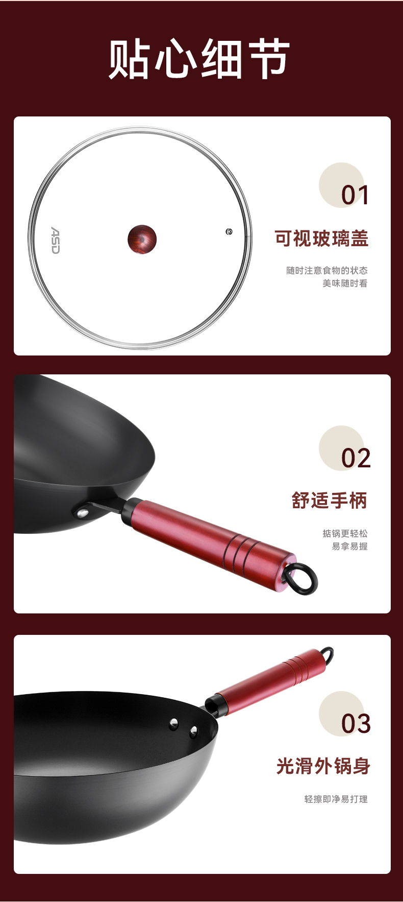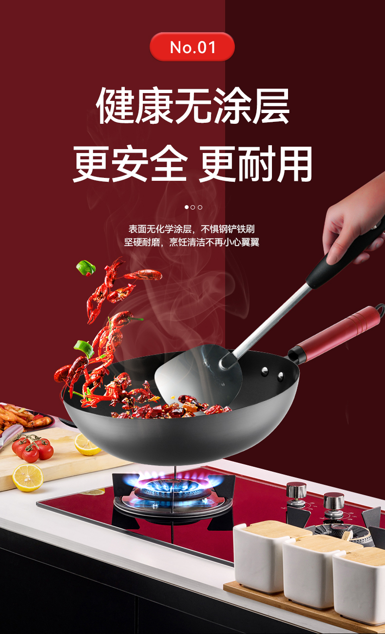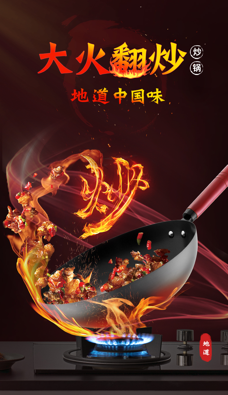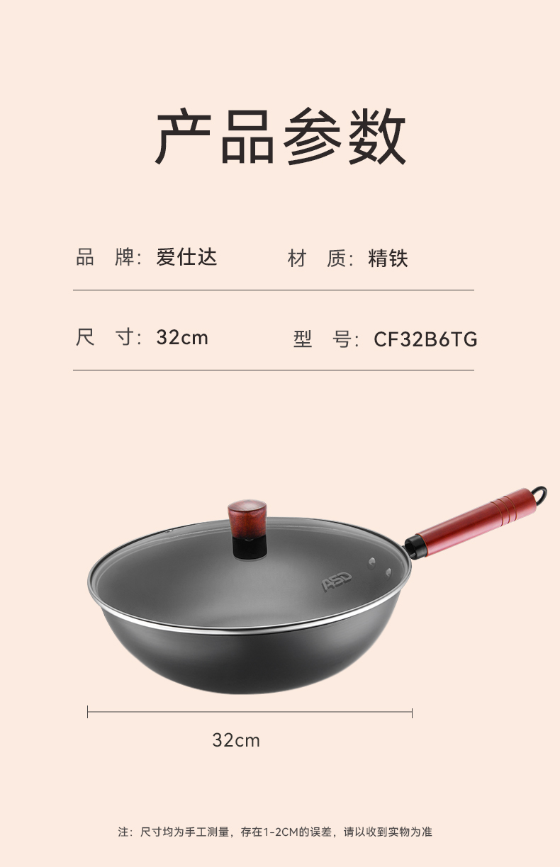爱仕达(ASD) 精铁无涂层爆炒锅CF32B6TG CF32B6TG 32cm 藏青色(单位:个)