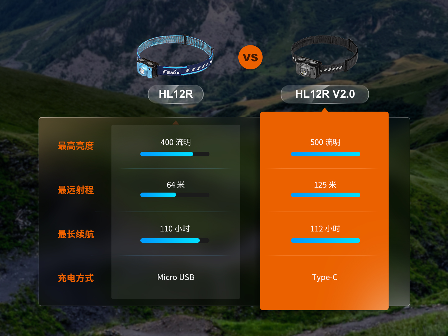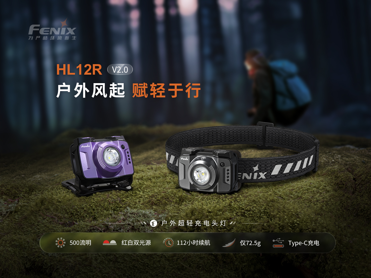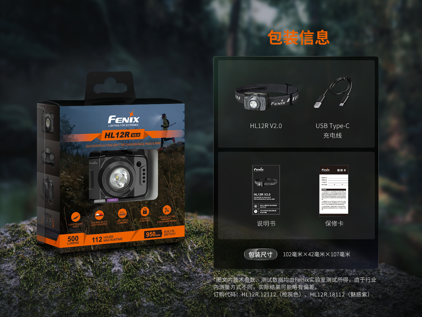 FENIX 户外头灯 HL12R V2.0 500流明125米射程 枪灰色(单位:套)
