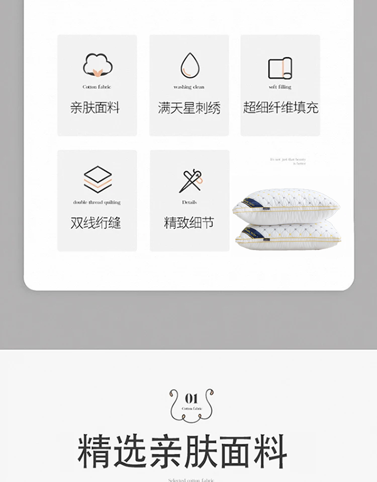 Hllton Meiju 五星级酒店款满天星枕头 HL-1601 48x74*8cm 白色(单位:个)