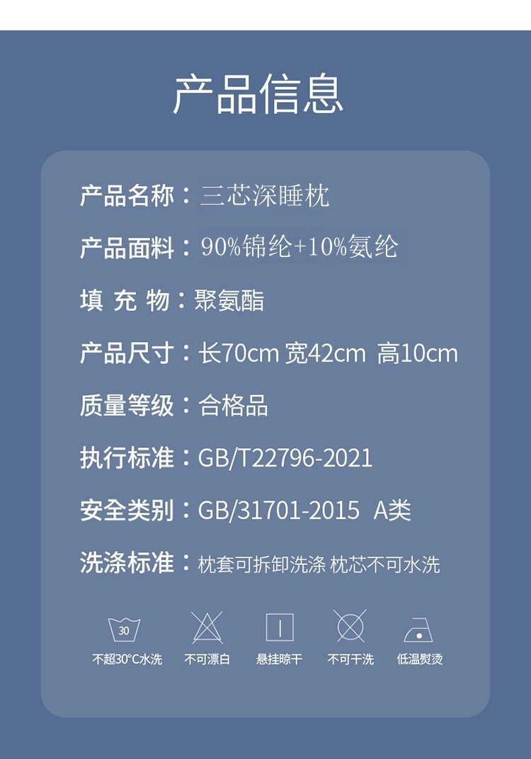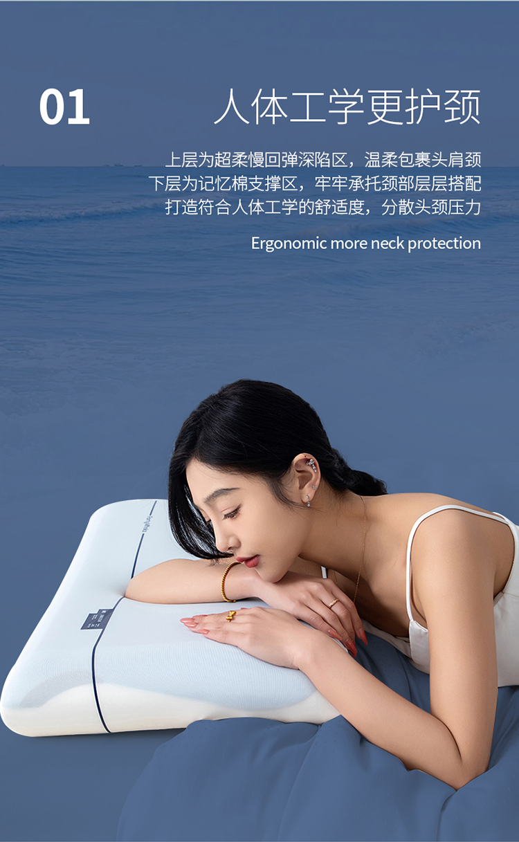 Hllton Meiju 五星级酒店款深睡记忆枕pro HL-1606 42x70*10cm 天蓝色(单位:只)