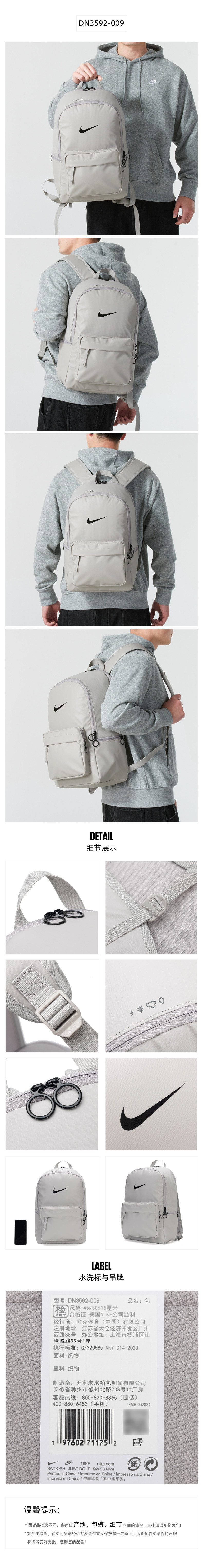耐克(NIKE) 中性双肩包 DN3592-009 45*30*15cm 学院灰/黑(单位:个)