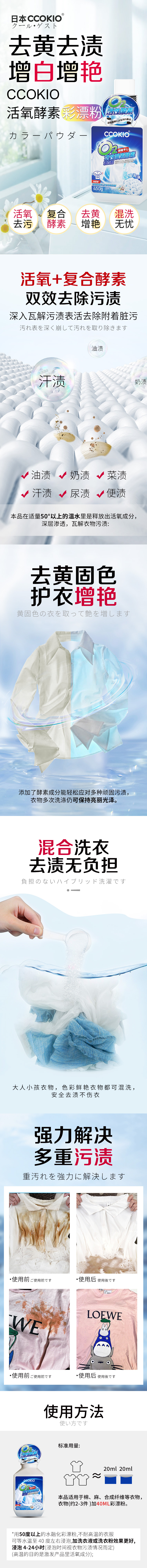 酷优客(CCOKIO) 活氧酵素彩漂粉爆炸盐 洗衣去污渍 450g*2瓶 蓝色(单位:组)
