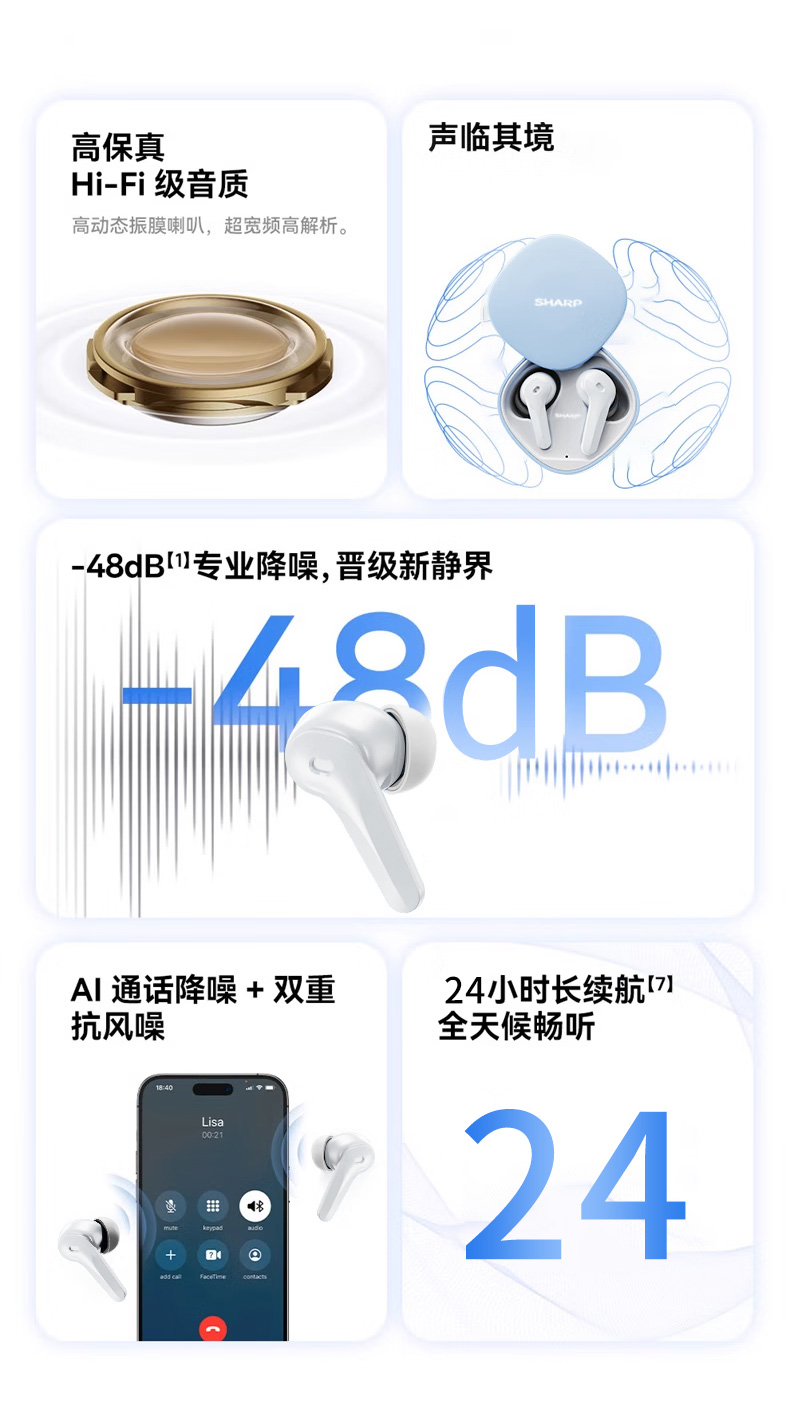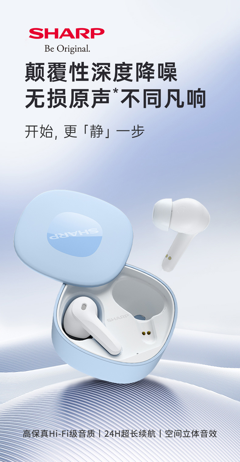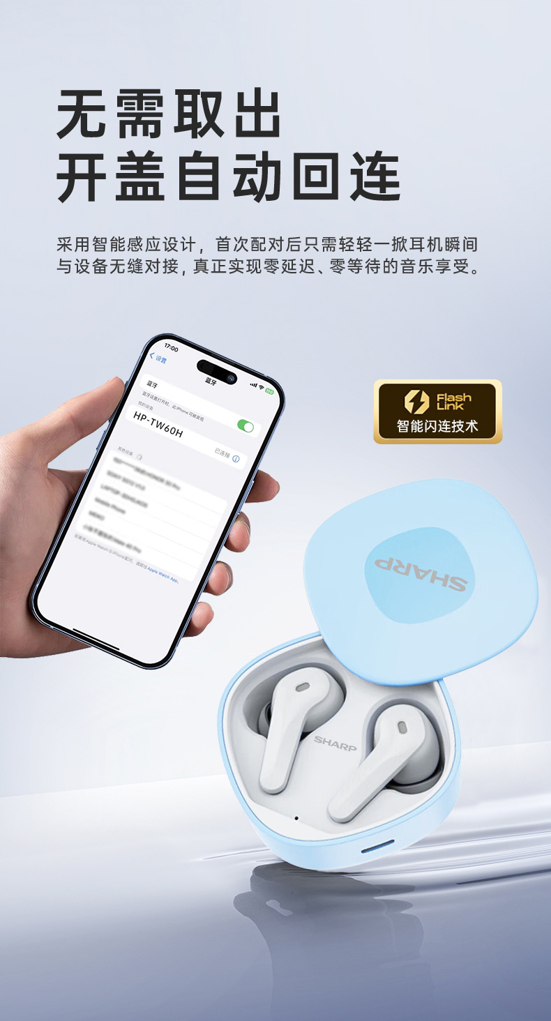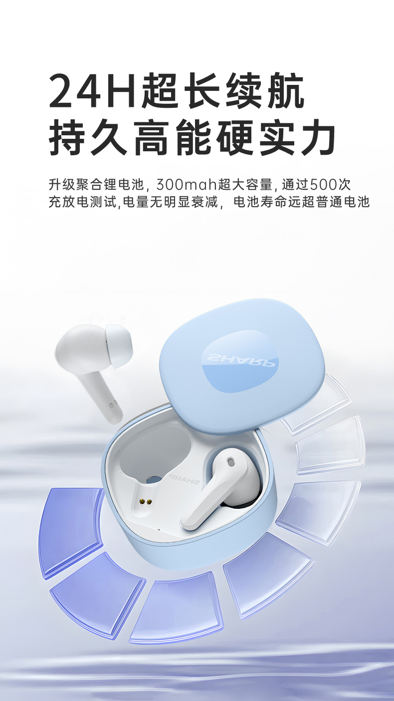 夏普(SHARP) 蓝牙耳机 真无线入耳式运动游戏耳机 HP-TW60H 300mAh 晴海蓝(单位:副)