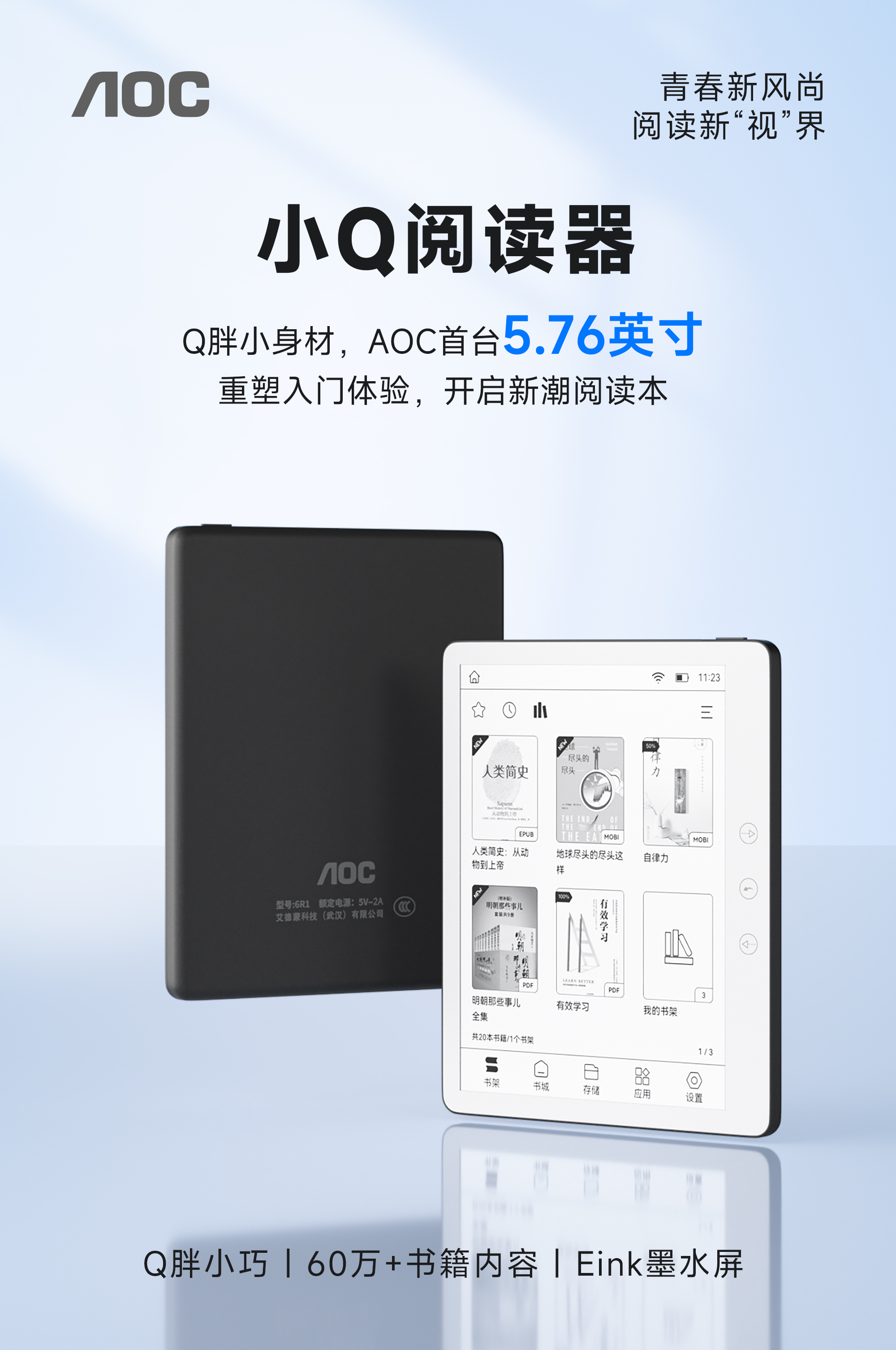 AOC 电纸书 6R1小Q阅读器 5.76英寸 黑色(单位:台)