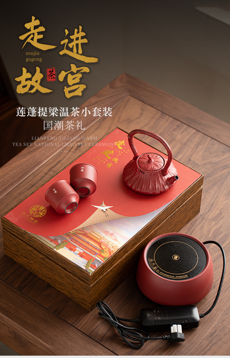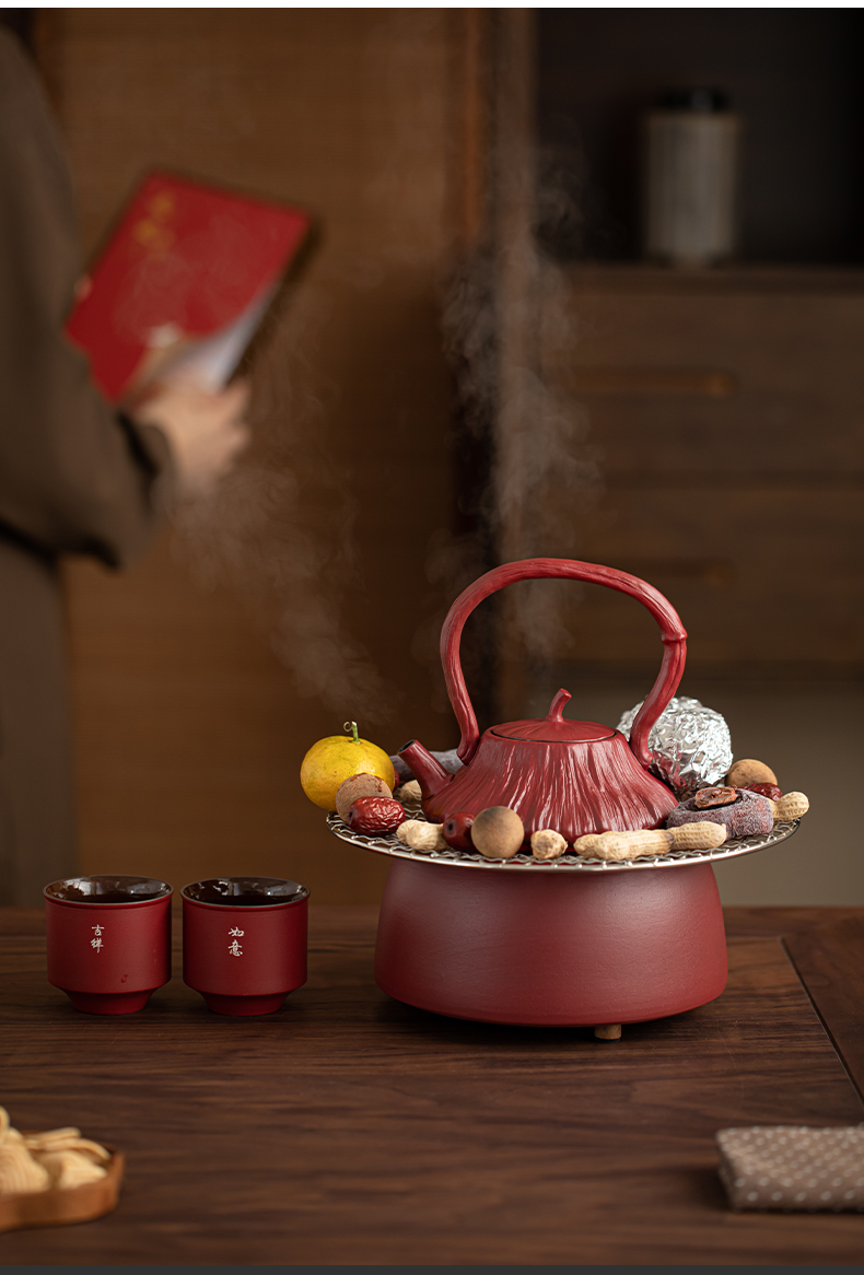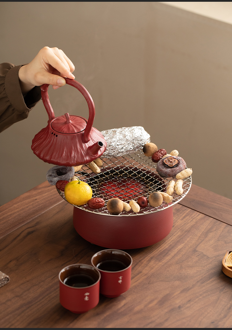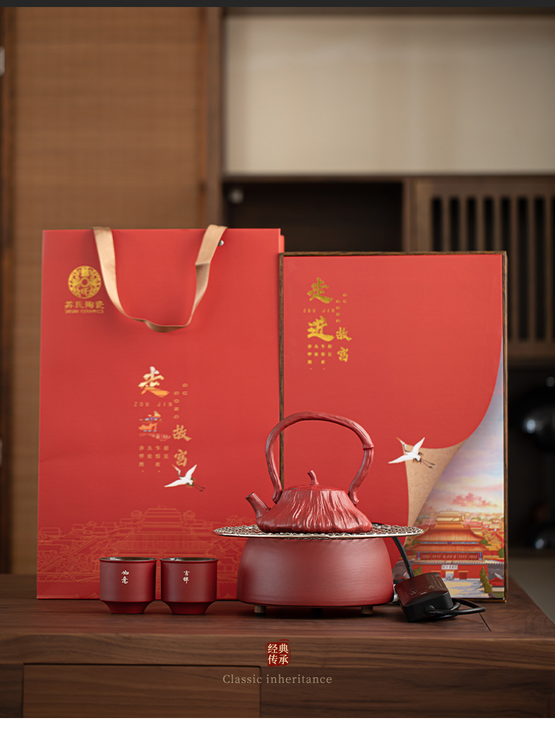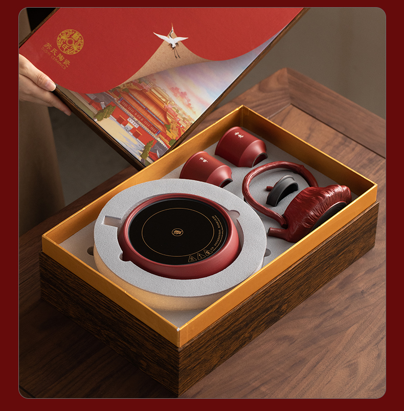 苏氏陶瓷(SUSHI CERAMICS) 煮茶器电陶炉故宫莲蓬茶具 J1156 5头 枫叶色(单位:套)
