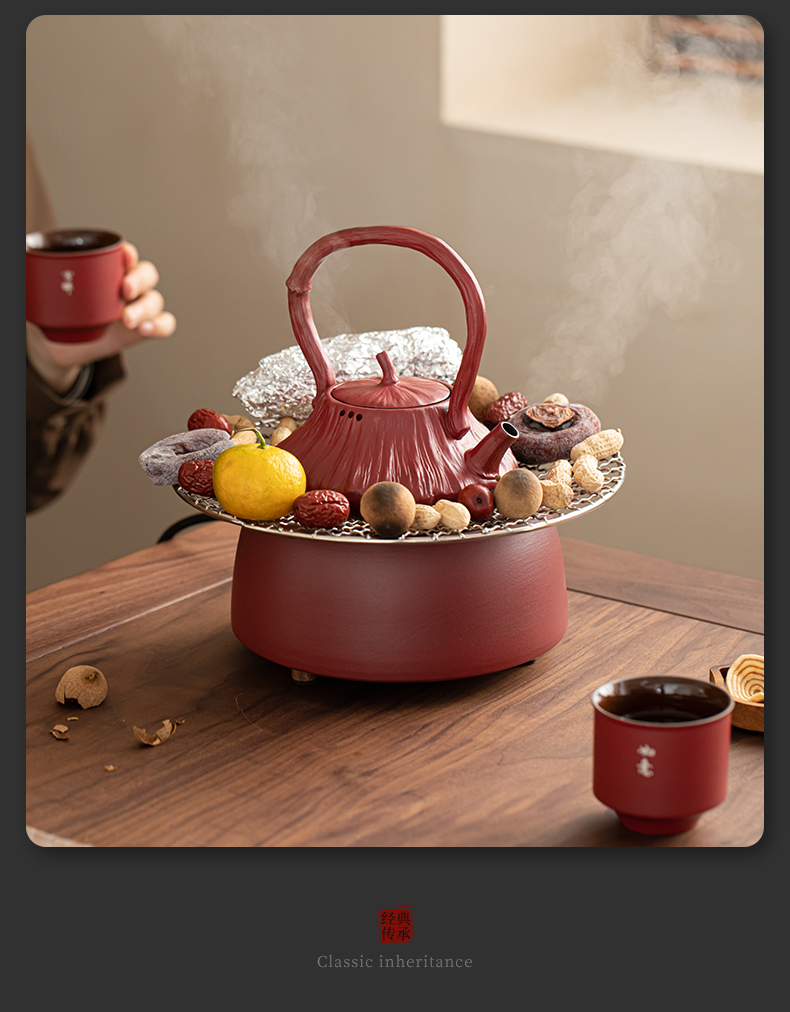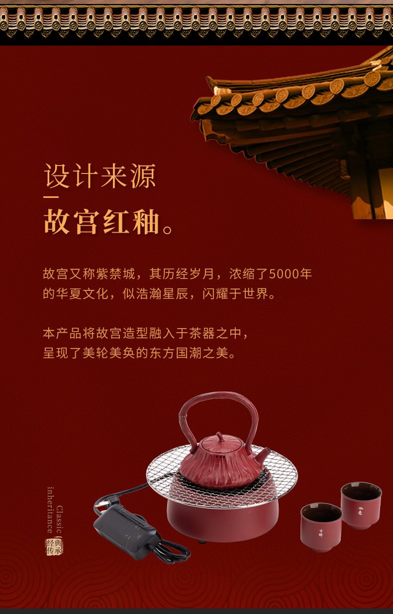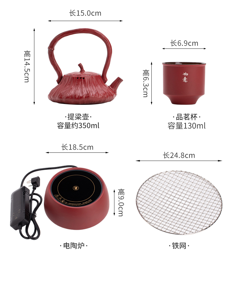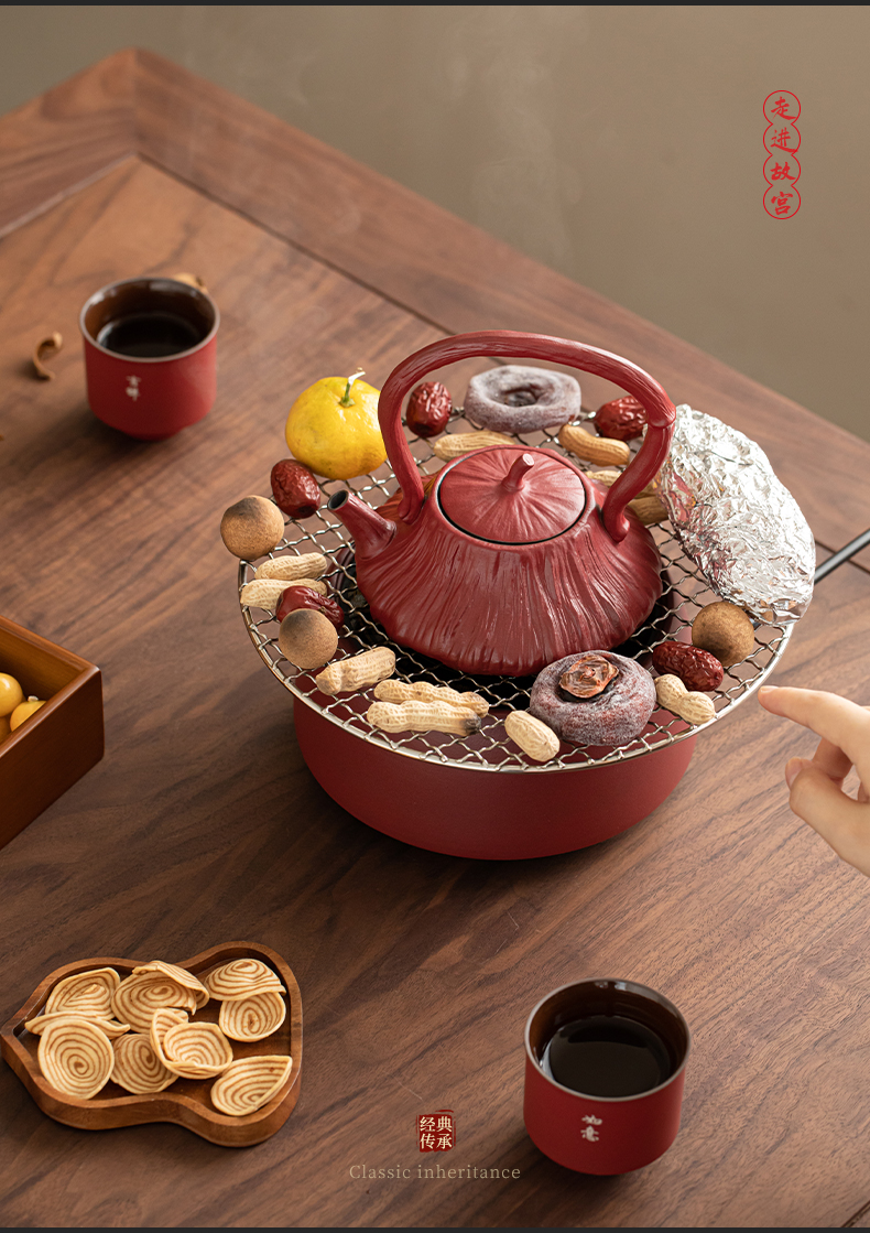 苏氏陶瓷(SUSHI CERAMICS) 煮茶器电陶炉故宫莲蓬茶具 J1156 5头 枫叶色(单位:套)